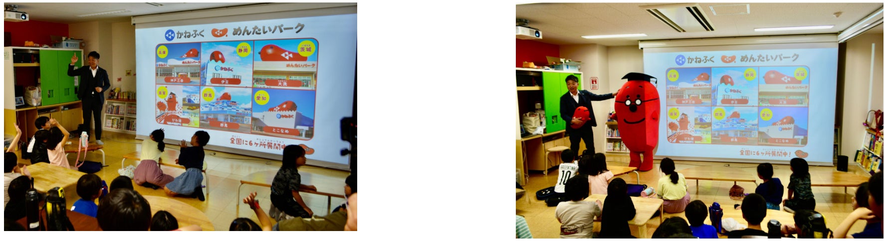 『かねふく』は、子どもたちに明太子を身近に感じてもらいたいという想いから『ごっこランド』に出店いただいています。本ワークショップにもご参加いただき、かねふく公式キャラクター『タラコン博士』も登場し、会場を盛り上げました。