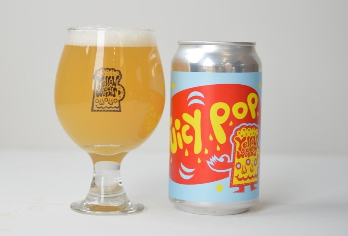 福島県のカトウファームの運営する「Yellow Beer Works」で販売されているクラフトビール「Juicypop」。グレープフルーツのような柑橘感のあるアロマとフレーバー、濃厚でとろんとした口当たり、ホップのビターな味わいが特徴。ポップなデザインのラベルにこだわった缶ビールです。(アルコール度数:6% 350ml缶にて提供)