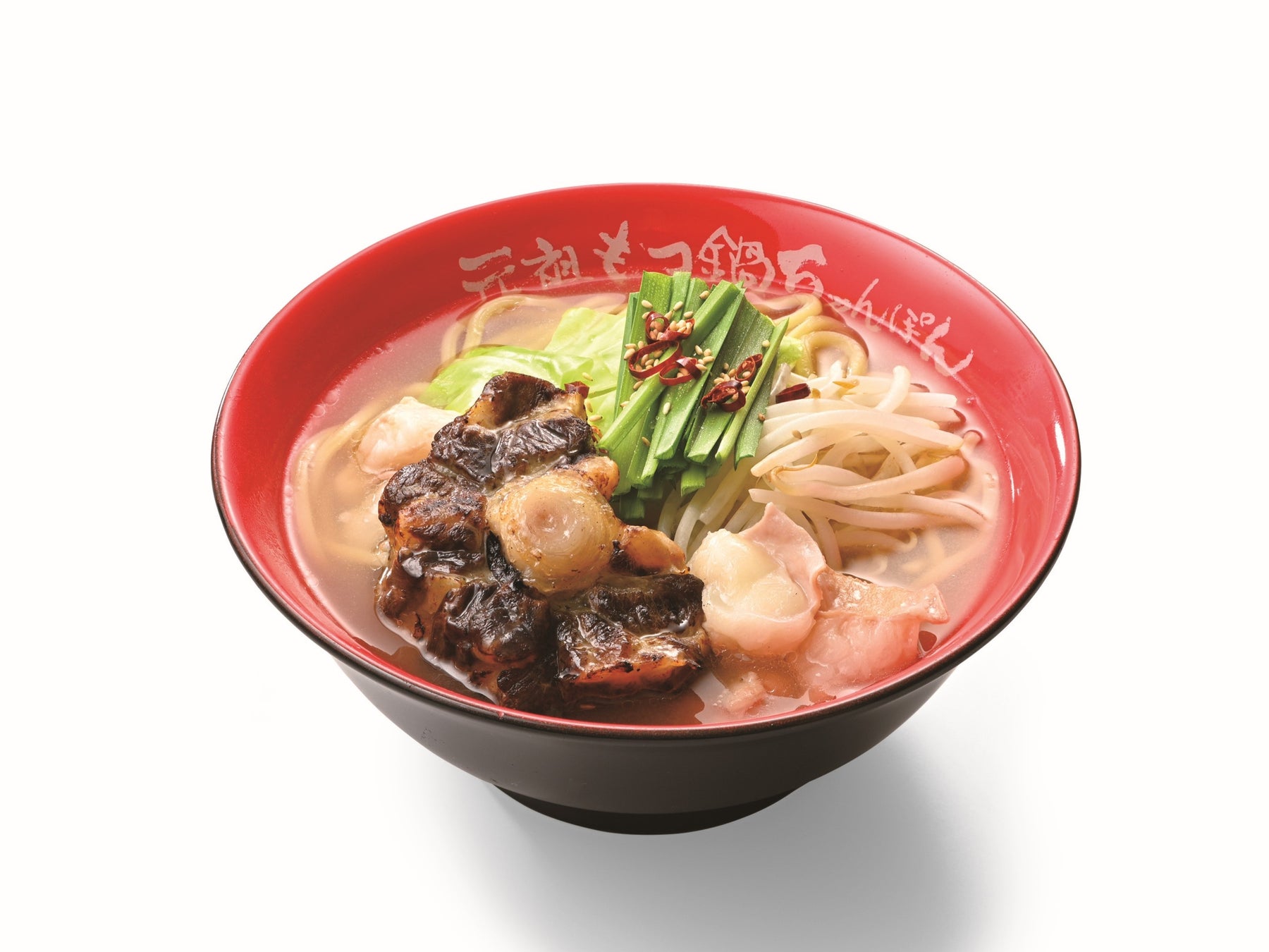 国産牛テールと牛骨の旨みを凝縮し、鳴門の焼塩で仕上げたスープのもつ鍋ちゃんぽん。牛テール肉を炙りトッピングした贅沢な一品をイートインで味わえます。