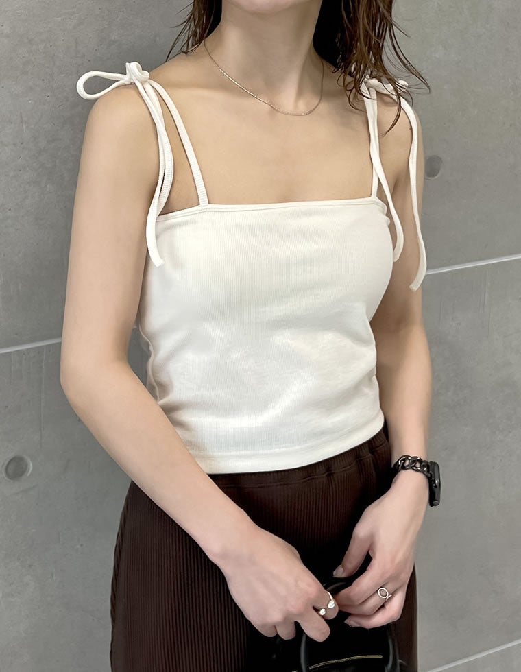 トップスとしてもインナーとしても着用可能な肩リボンキャミソール。
