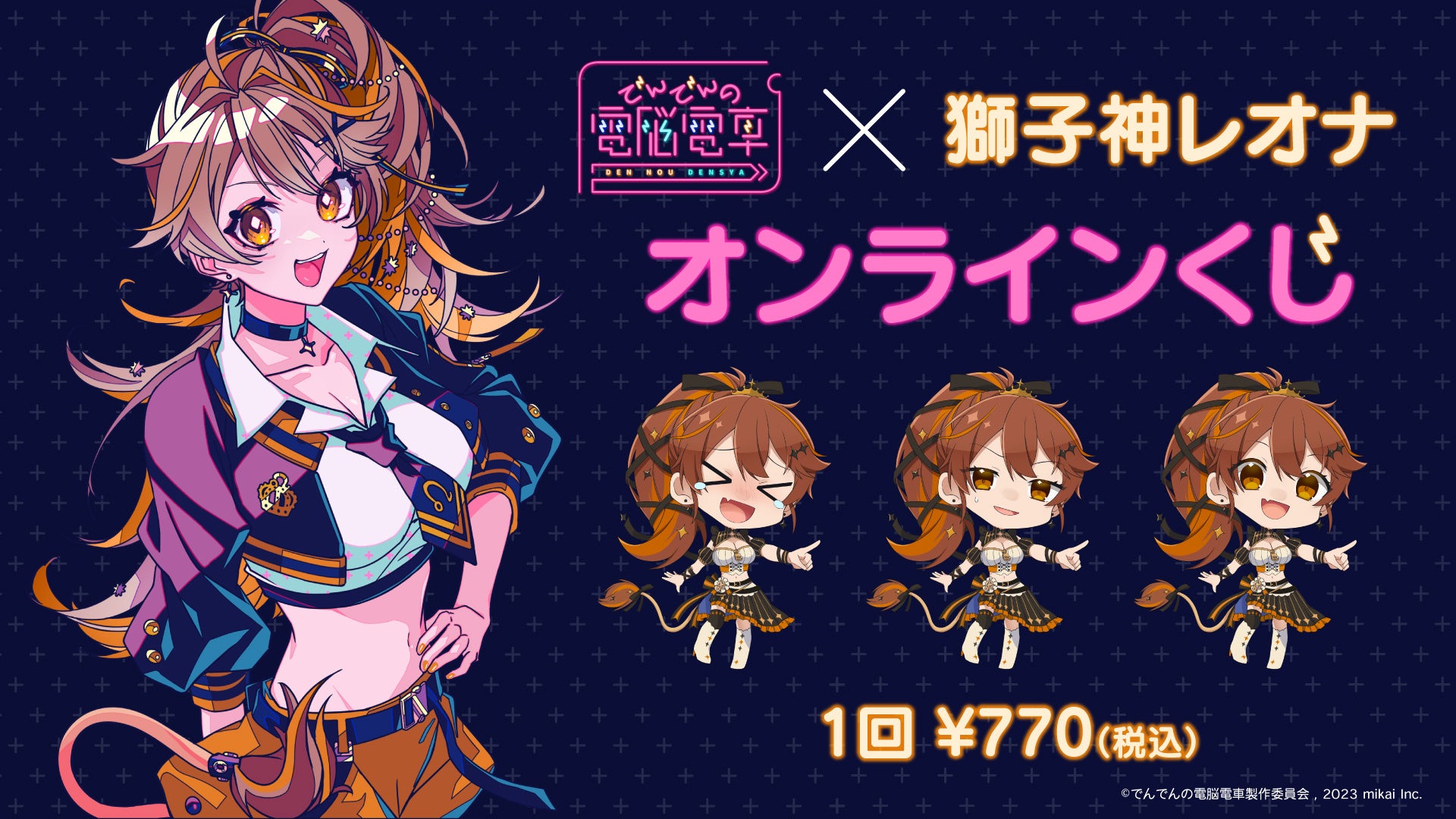 VTuber主演の3Dショートアニメ「でんでんの電脳電車」での獅子神レオナの出演を記念して、オンラインくじ「でんでんの電脳電車×獅子神レオナオンラインくじ」を発売いたします。