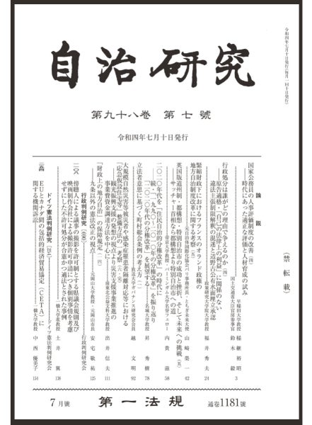 大正14年創刊の公法・行政学・地方自治行財政に関する優れた論文を集めた伝統ある総合月刊誌です。