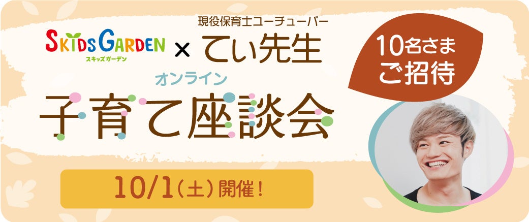 全国56店舗お子さまだけであそべる施設 スキッズガーデン主催 現役保育士YouTuberてぃ先生『オンライン子育て座談会』開催