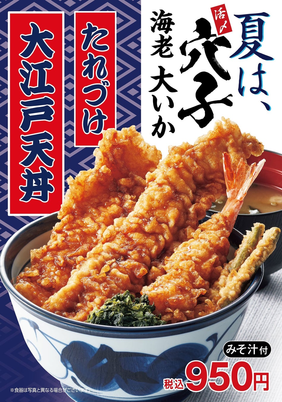 天丼てんやの夏がやってきた!6月13日(木)より販売開始甘辛たれに天ぷらをたっぷりくぐらせた『たれづけ 大江戸天丼』とミニ天丼と麺の夏限定『ミニ天丼とそばのセット』が登場!