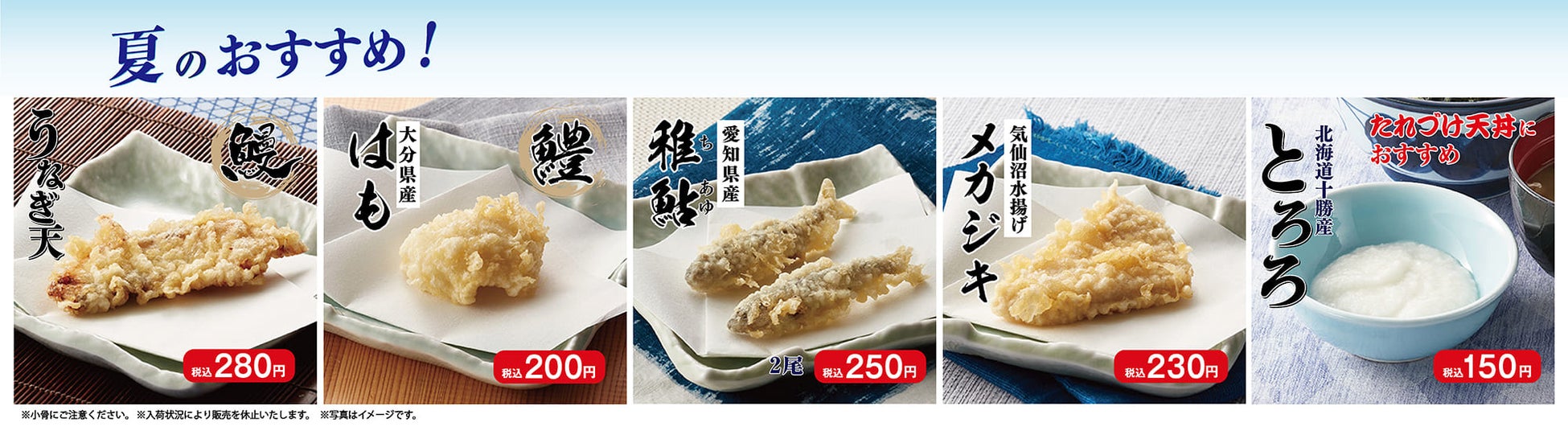 夏のごちそう食材と美味しい魚がそろった天丼が登場