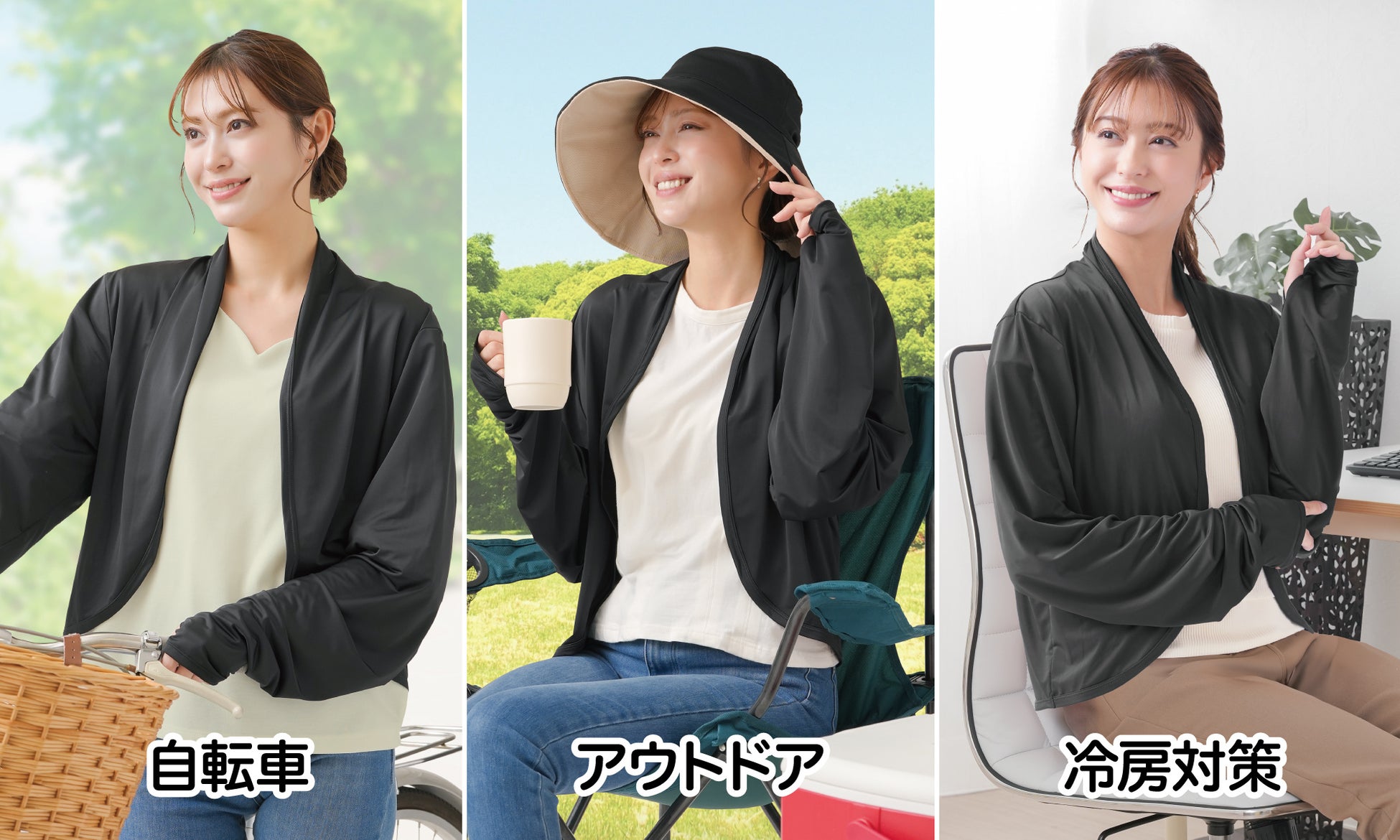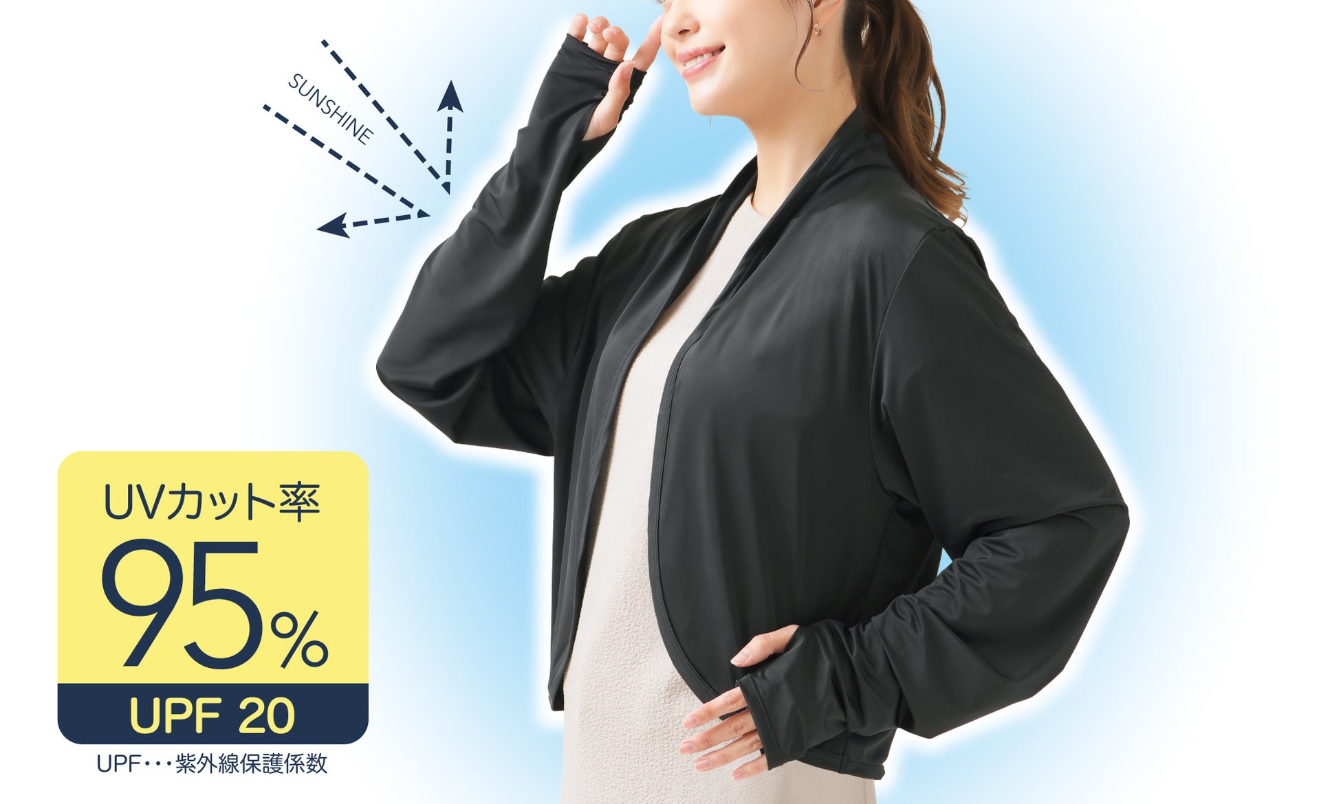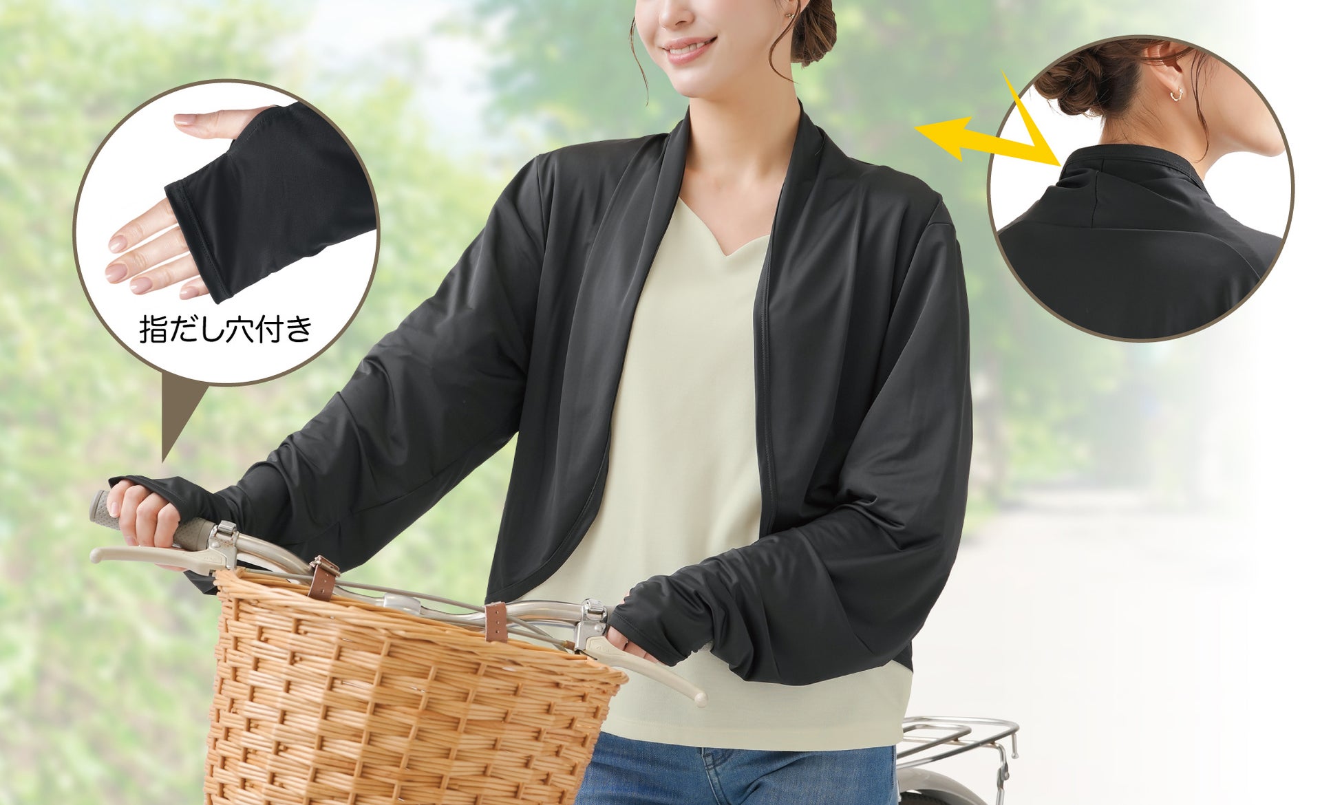UVカット率95%!サッと羽織るだけでUV対策!うなじ・肩・腕・手の甲をしっかりガードするボレロ