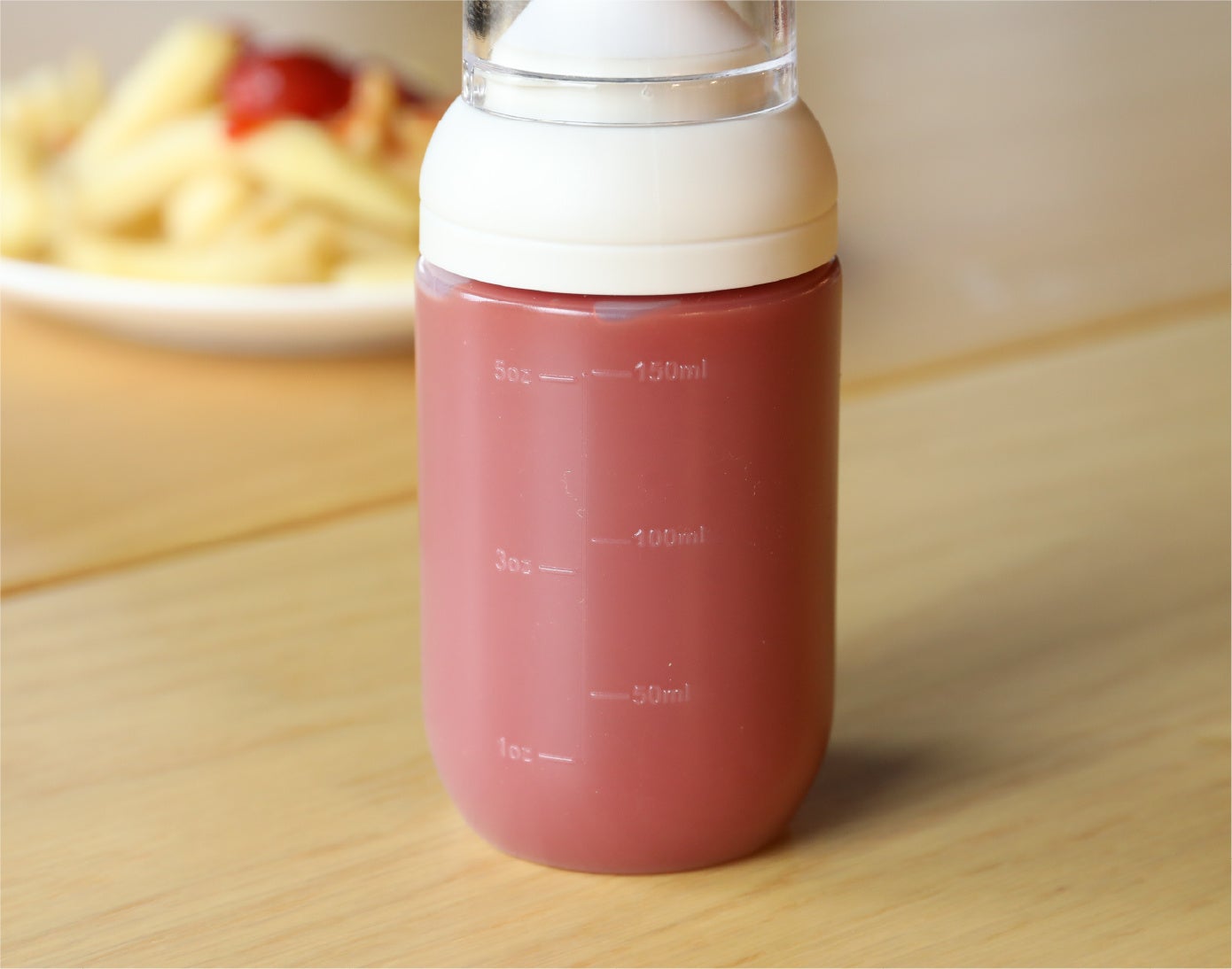 ケチャップ、ソース、マヨネーズなど、粘度のある調味料も押した分だけ出やすいノズル。