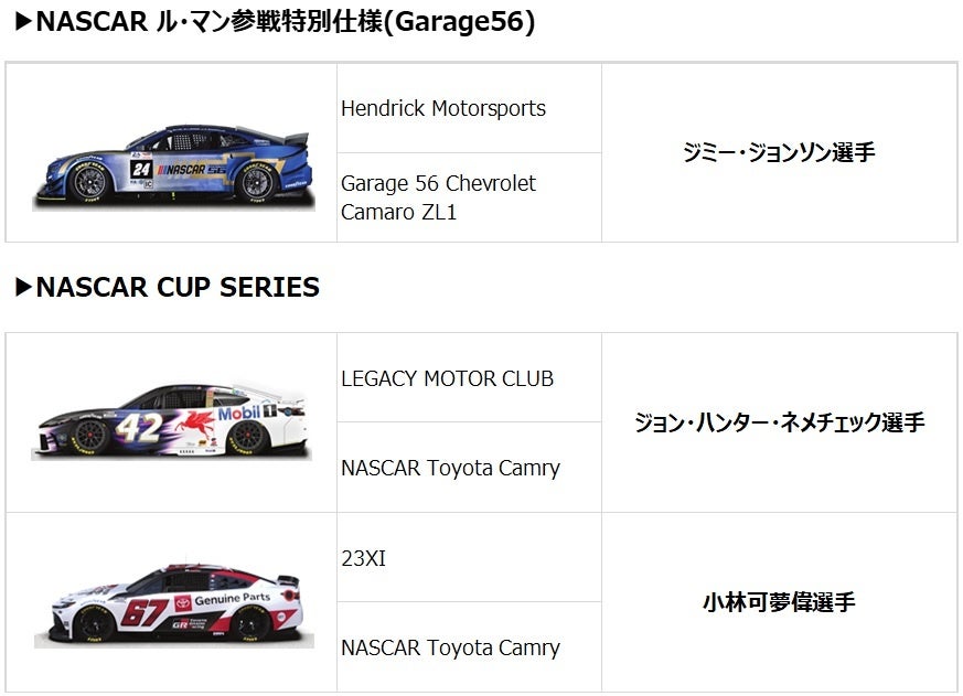 NASCAR ルマン参戦特別仕様(Garage56) および NASCAR CUP SERIESの車両整備ピットの公開 |