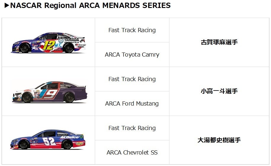 また、日本人としてNASCARに挑戦している古賀琢麻選手も注目の存在。