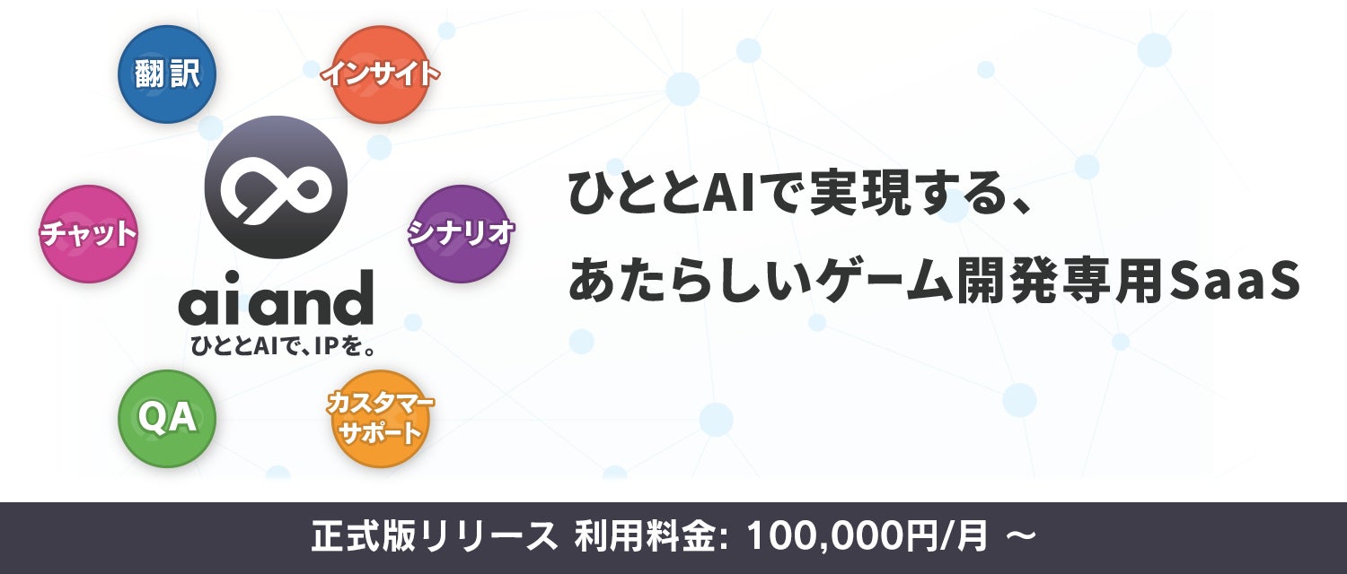 株式会社ドリコム(本社:東京都品川区、代表取締役社長:内藤裕紀、以下ドリコム)は、2024年8月にアーリーアクセスを開始した、ゲーム開発に携わる全ての人の創造力を飛躍させるゲーム開発専用 AI SaaS プラットフォーム「ai and(アイアンド)」の正式版を2024年11月11日(月)にリリースいたしました。