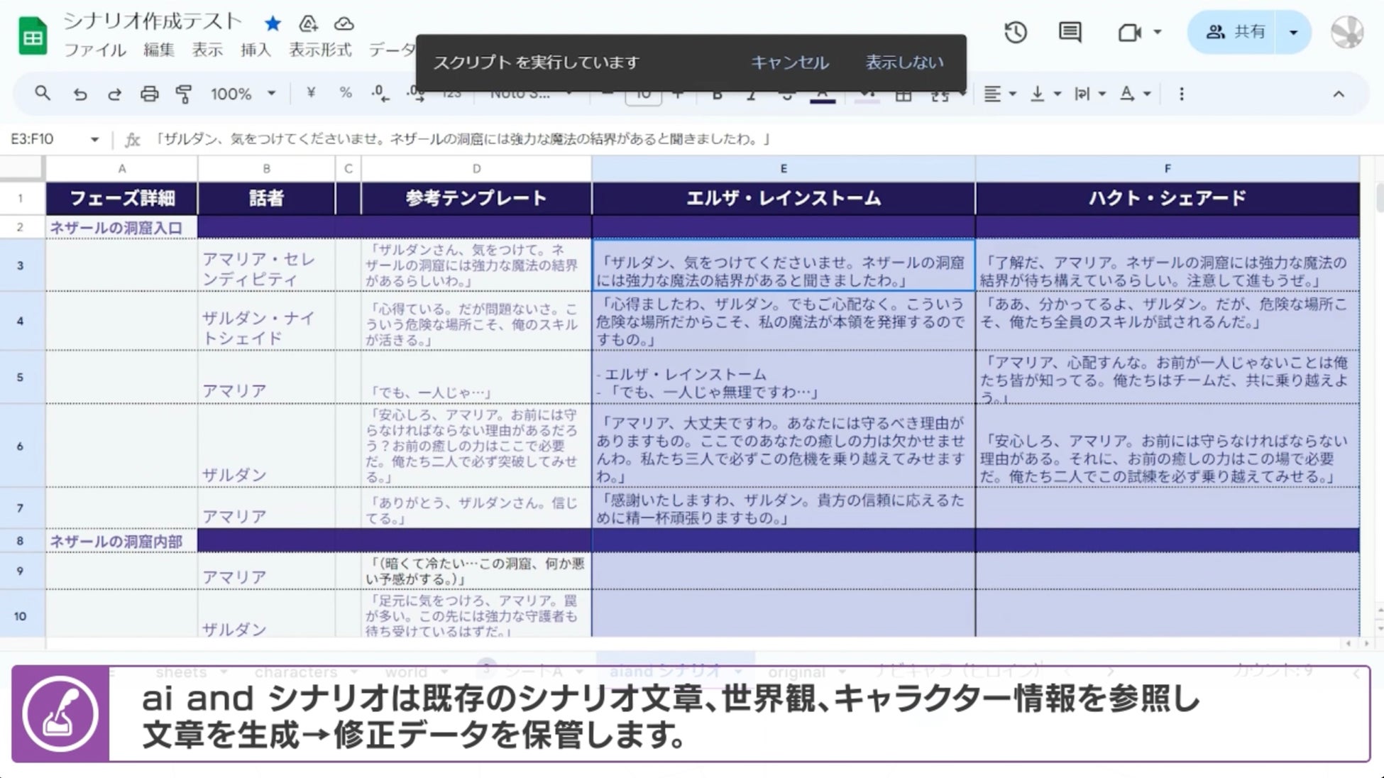既存のデータを参照し、繰り返し作成する簡単なシナリオや文章を自動生成。 |