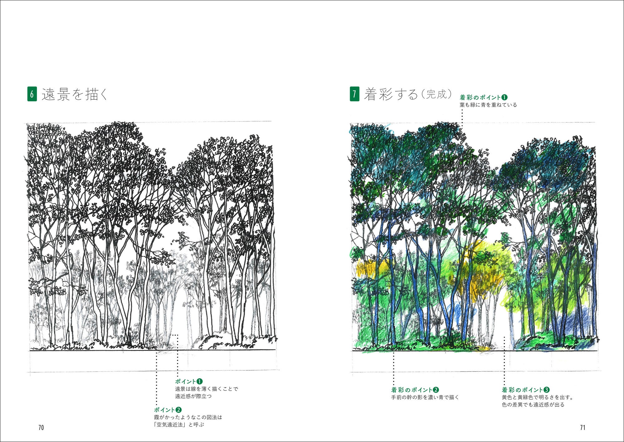 それもそのはず、大事なコツは背景の「緑」の描き方にありました。