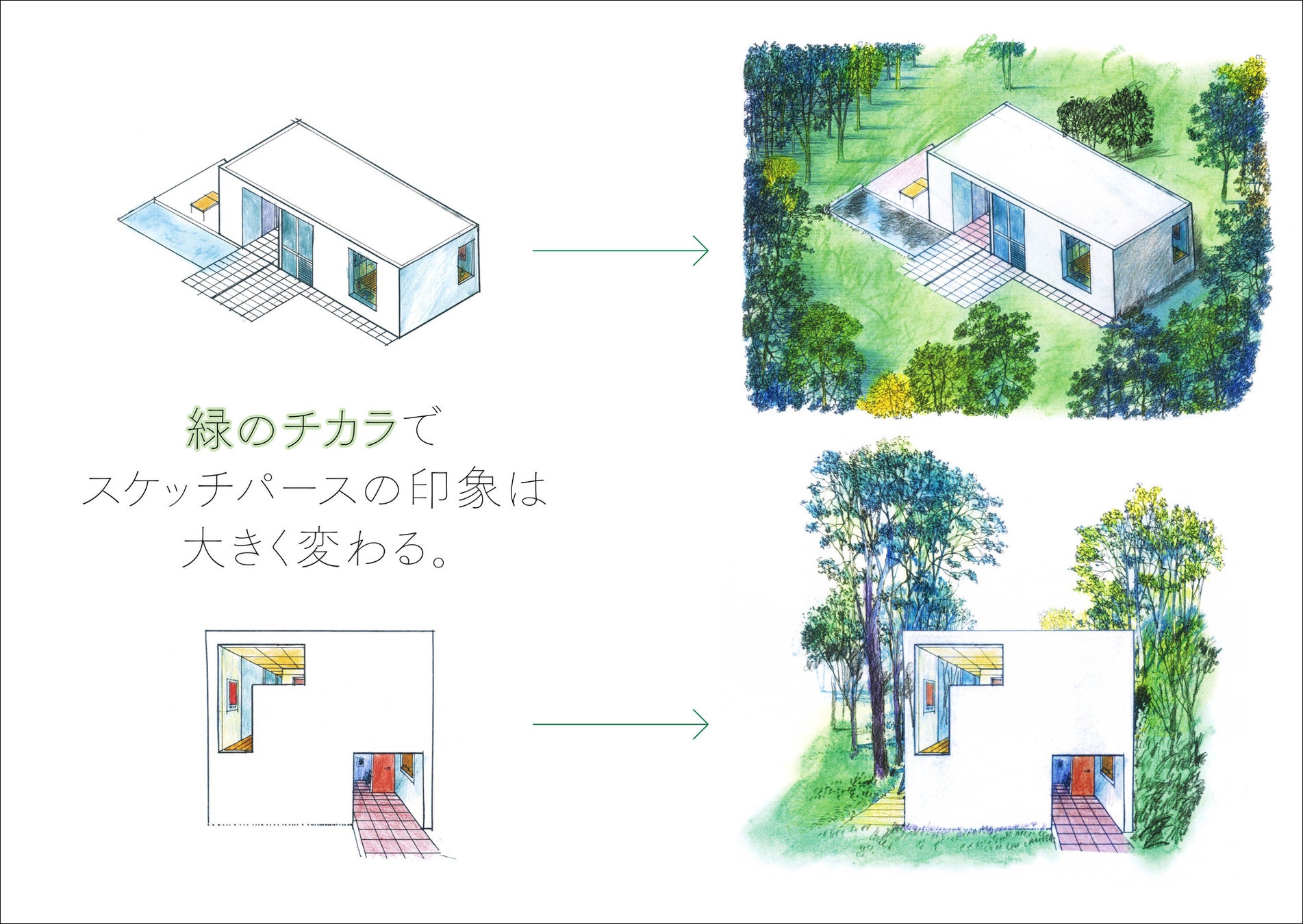 絵が苦手な人でも簡単に実践できて、ふだんのスケッチパースが格段にうまくなる! 本書では、そんな「緑のチカラ」を効果的に活かすコツを、ステップバイステップでわかりやすく伝授します。
