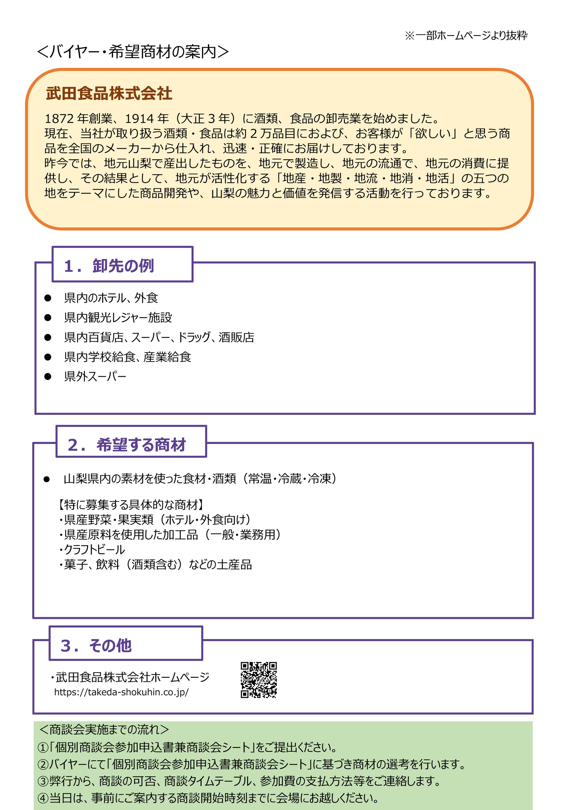 武田食品株式会社との個別商談会の開催について