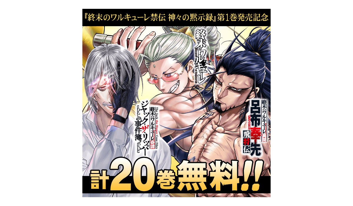 株式会社コアミックス(東京都武蔵野市)の公式マンガアプリ「マンガほっと」にて、『終末のワルキューレ禁伝 神々の黙示録』第1巻が2024年11月20日(水)に発売されることを記念し、期間限定で関連作品の無料範囲を大増量して配信いたします。