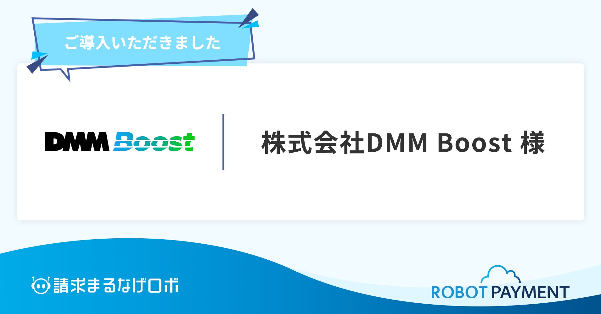 株式会社ROBOT PAYMENT(本社:東京都渋谷区、代表取締役:清久 健也、以下「ROBOT PAYMENT」)は、企業間請求代行サービス「請求まるなげロボ」が、DMMグループの株式会社DMM Boost(以下、「DMM Boost」)に導入されたことをお知らせします。