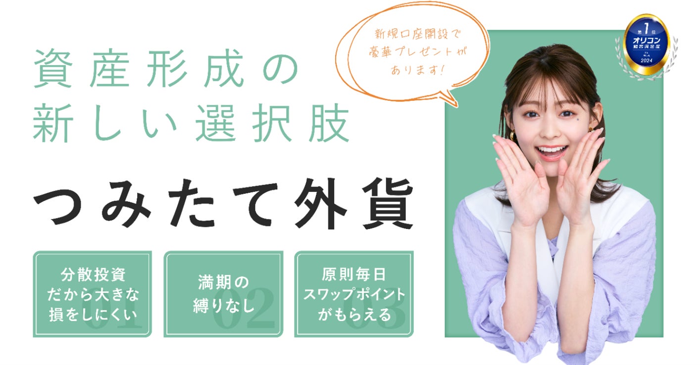 当社の提供する「つみたて外貨」は、FXの仕組みを活用して、コツコツ外貨を貯めて資産を育てられるサービスです。1通貨単位で注文が可能となっており、数百円程度から積立を始めることができるため、初心者の方でもお手軽に始めやすく、中長期的な資産運用を提案できるサービスとなっております。