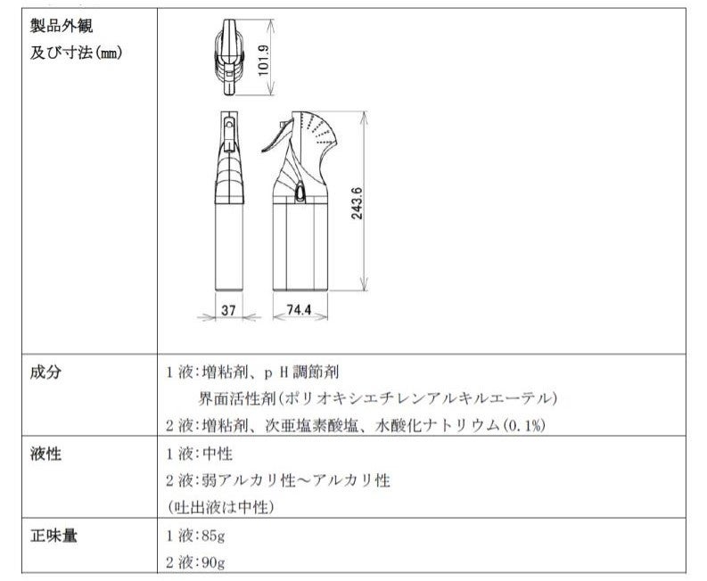 漂白可視化法と2液式スプレー機構の組み合わせにより1プッシュで尿ハネ汚れ部のみに色を付けることが可能になりました。
