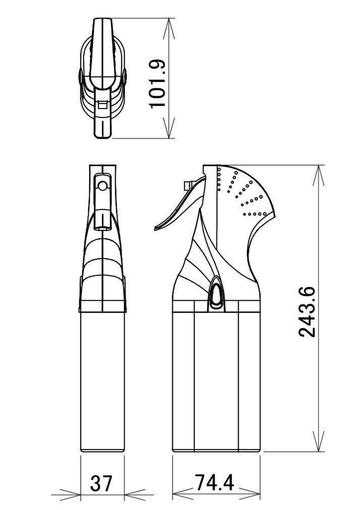 トリガーを引くと、この2液がボトルジョイントで混合され、噴霧されます。