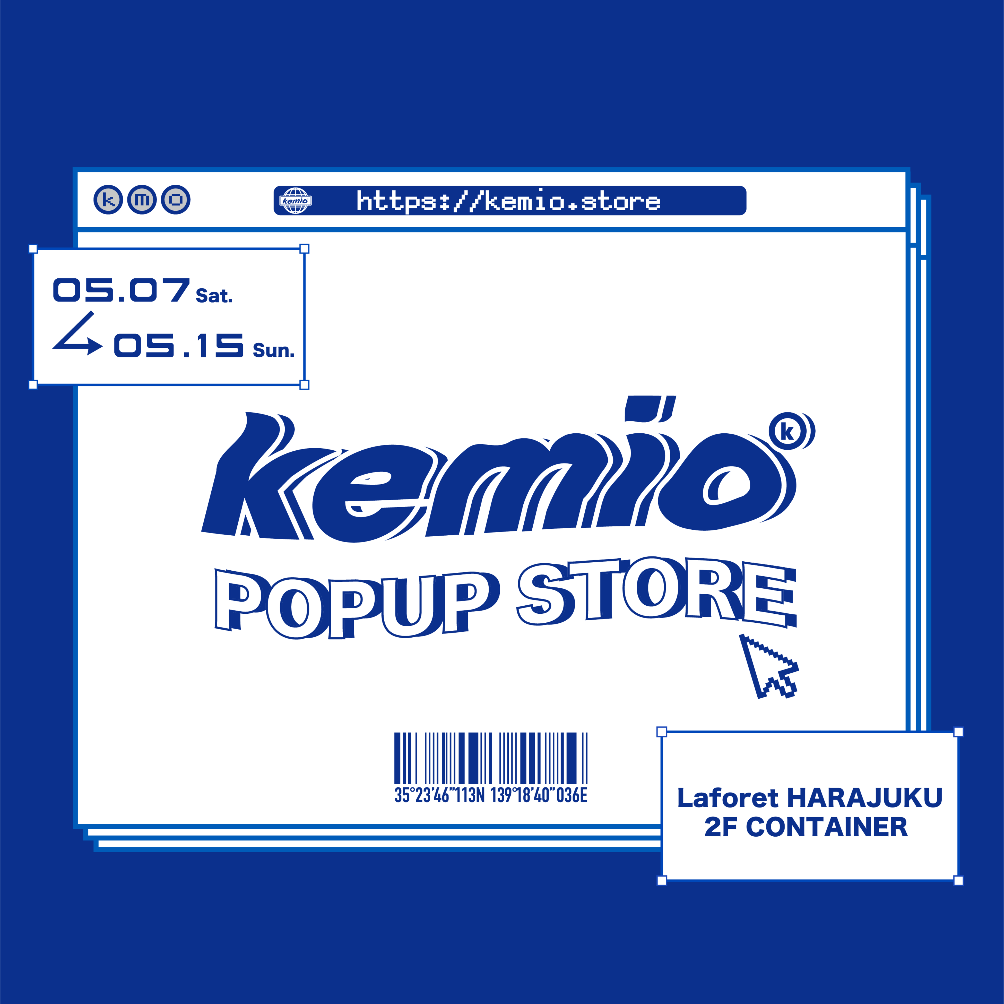 このたび、5月7日(土)から5月15日(日)の期間は、ラフォーレ原宿2Fコンテナにて、kemioプロデュースのオフィシャルグッズストア「kemio store」が初のPOP UP STOREをオープン。POP UP SHOPでは今までのコレクションから特に人気のあったアイテムを中心とするアーカイブアイテムとポップアップショップ限定アイテムに加えて、元祖音ゲー「パラッパラッパー」とのコラボレーションアイテムを販売いたします。