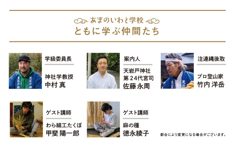 あまのいわと学校は季節ごとに、座学やフィールドワークを交えた講義を開催し、1年を通して天岩戸神話に触れ、学び、伝えていくことを目的に展開する学びの場です。