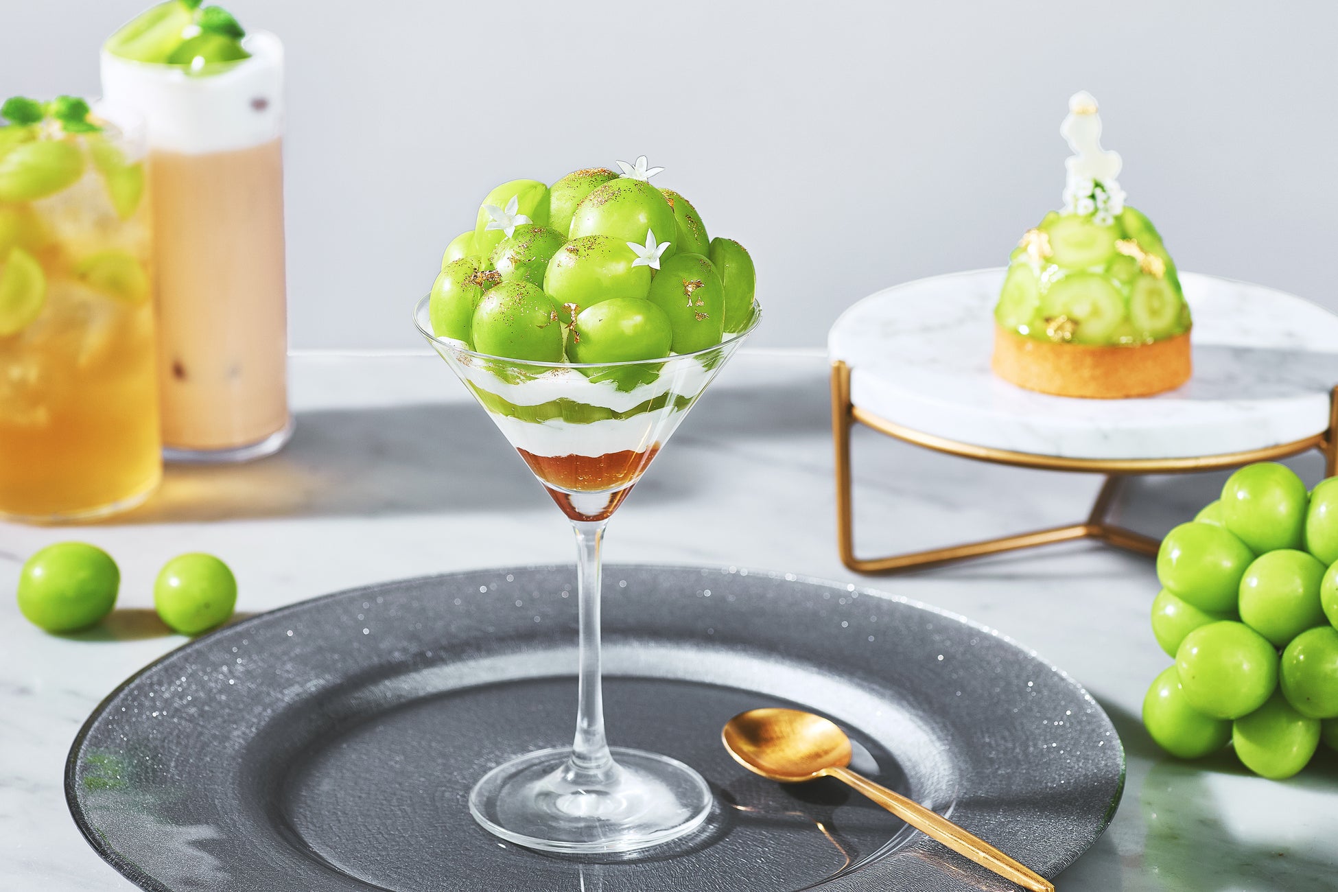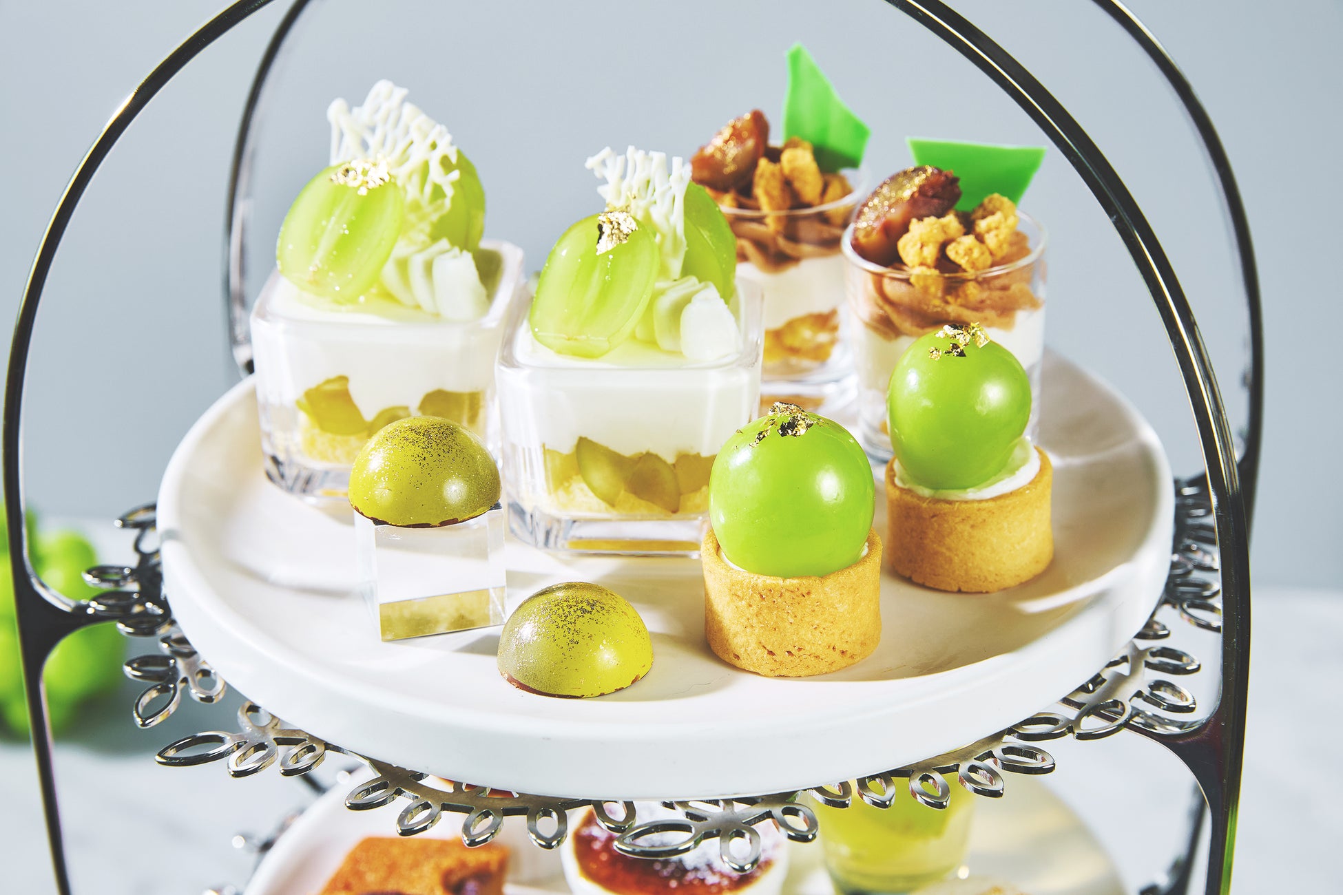 宝石のように美しいシャインマスカットの艶と輝きを際立たせた、繊細で多彩なスイーツを楽しめるアフタヌーンティーです。