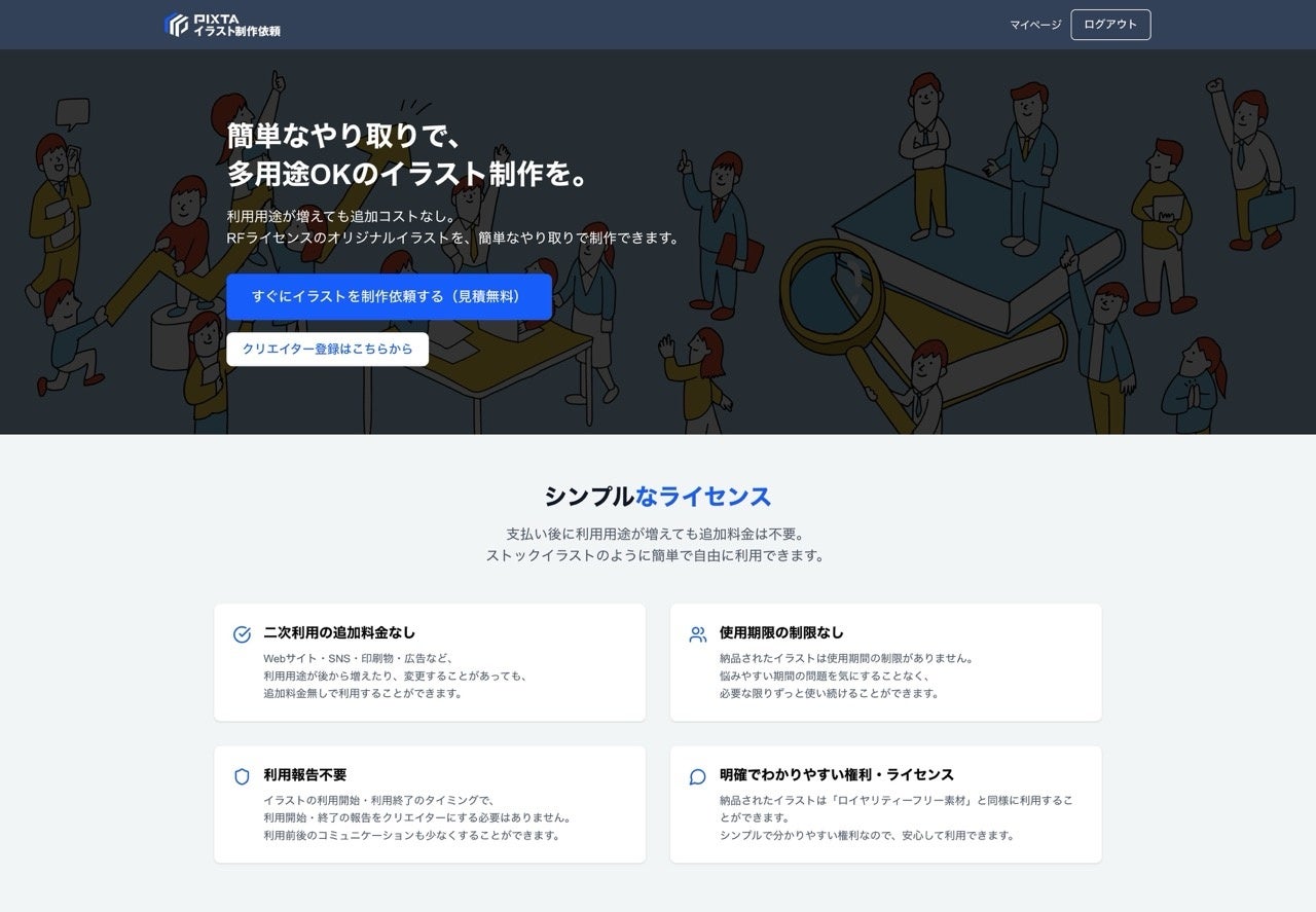PIXTAイラスト制作依頼は、商用利用可能な独自のイラストを制作してほしいビジネスユーザーと、イラスト制作を業務として受注したいイラストクリエイターのマッチングサービスです。