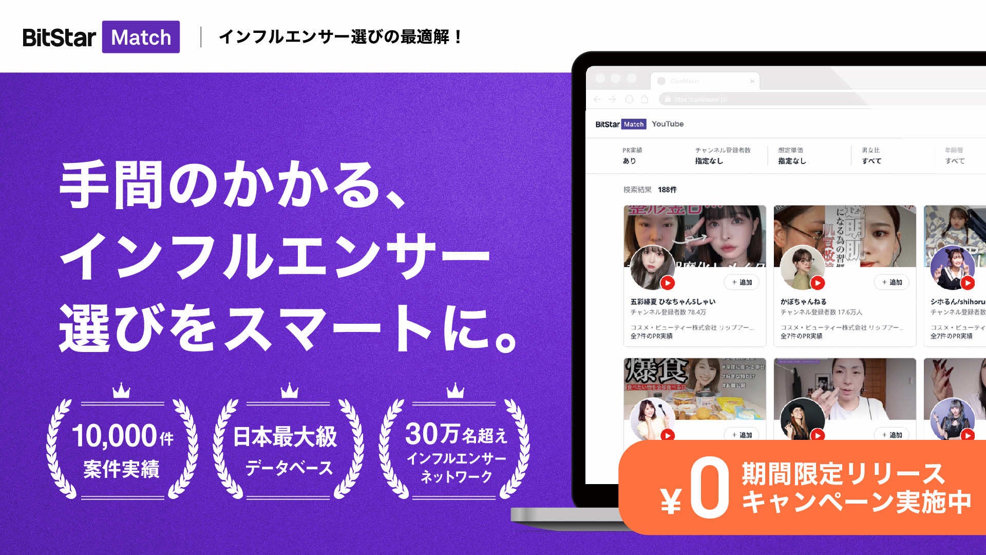 手間のかかるインフルエンサー選びをスマートに。インフルエンサーマーケティング支援ツール「BitStar Match」リリース【6/30まで無料キャンペーン実施中】