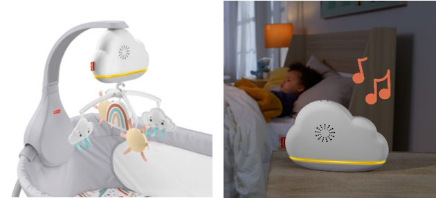 泣き声を感知するとセンサーが反応しメロディが自動的に流れ、赤ちゃんを睡眠へ促します。