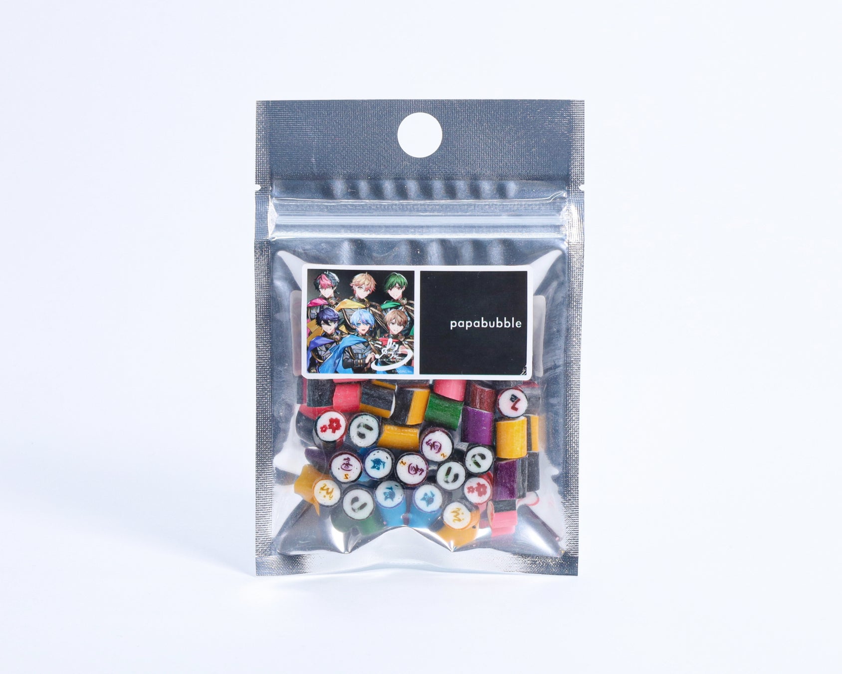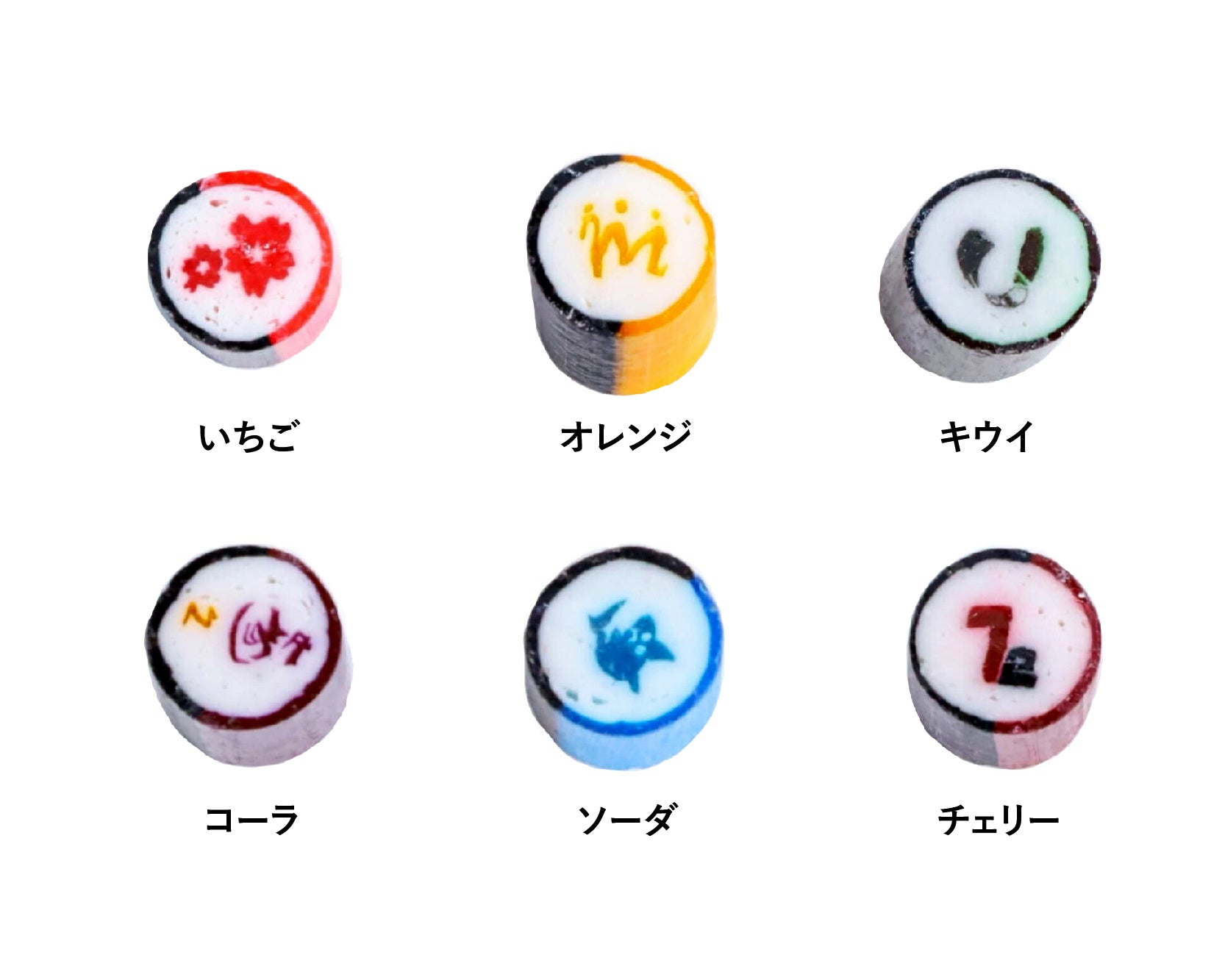 シックでかっこいい「シクフォニ」のメンバーをイメージし、小さなキャンディの中に世界観を詰め込みました。キャンディには6人それぞれのモチーフを職人が再現。黒とメンバーカラーが映えるデザインに仕上げました。
