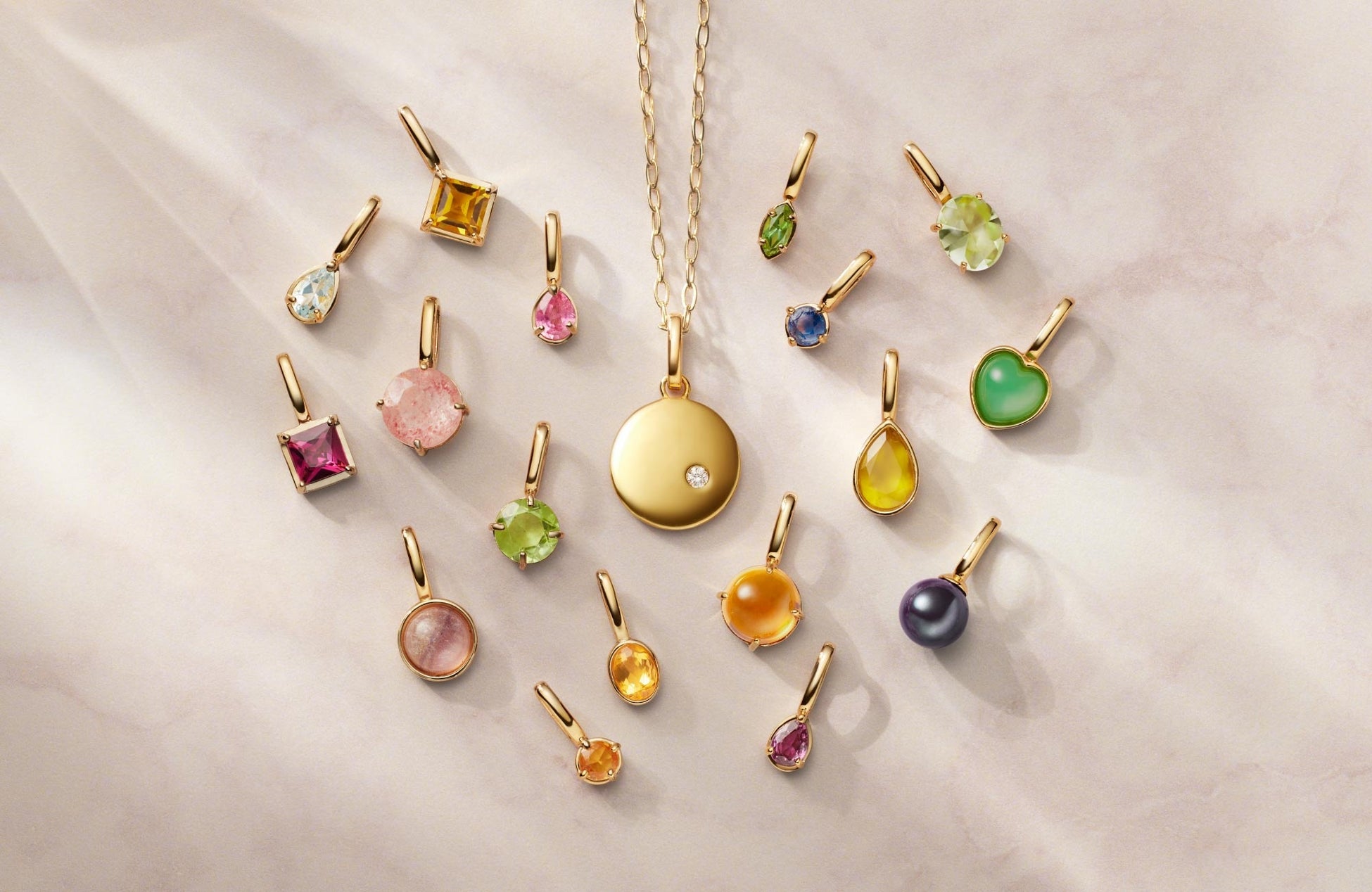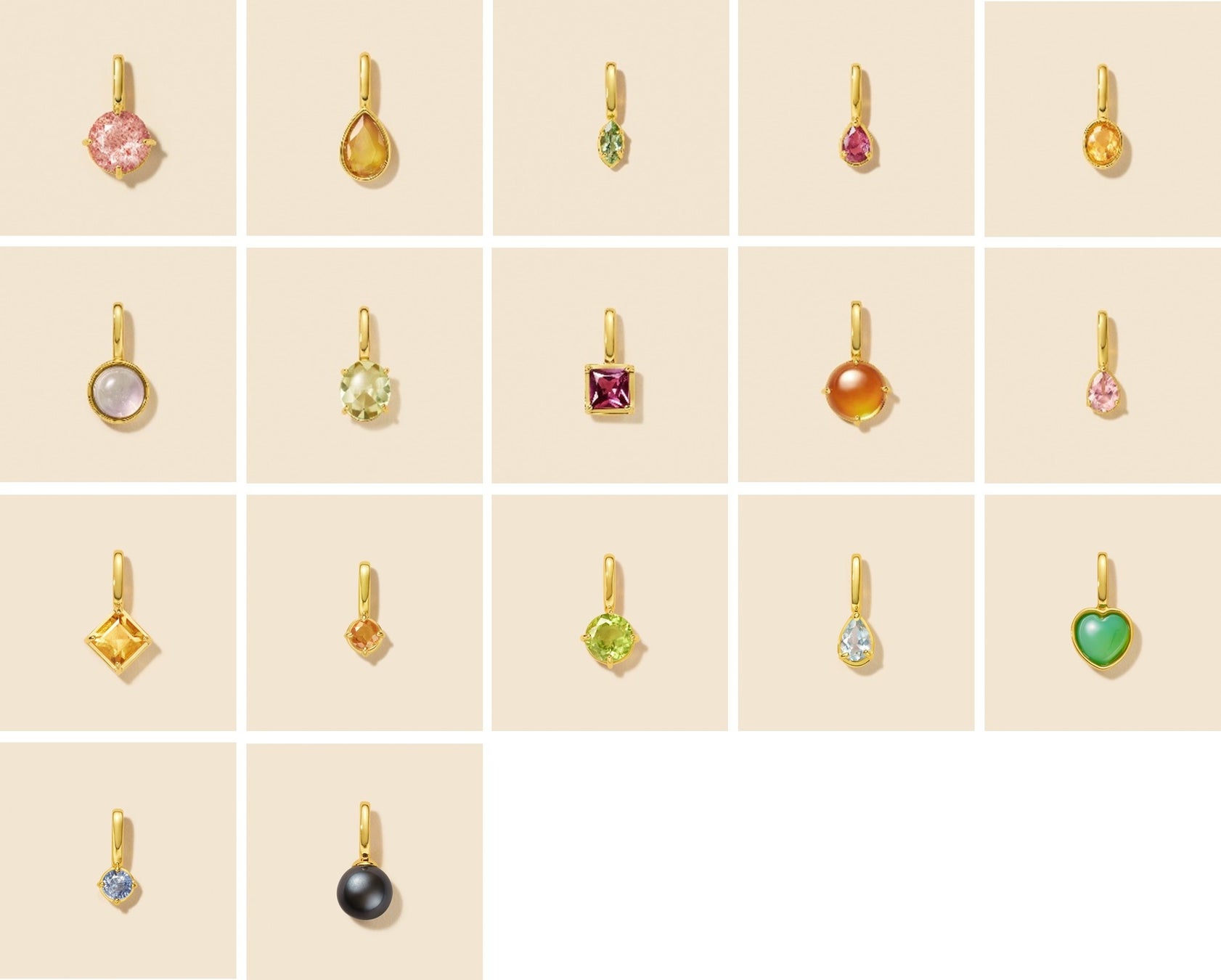 サステナブルなカラーをイメージした17色の天然石を留めたデザイン違いのチャームが登場。カラーやデザインでお好みのアイテムを選んでも、誕生石や星座石からお守りジュエリーとして選んでもお楽しみいただけます。お持ちのネックレスに重ねて通したり、チャームを複数組み合わせてスタイリングしたりと自由自在。あなたらしいアレンジでサステナブルな未来への想いをお守りのように胸に留めて。