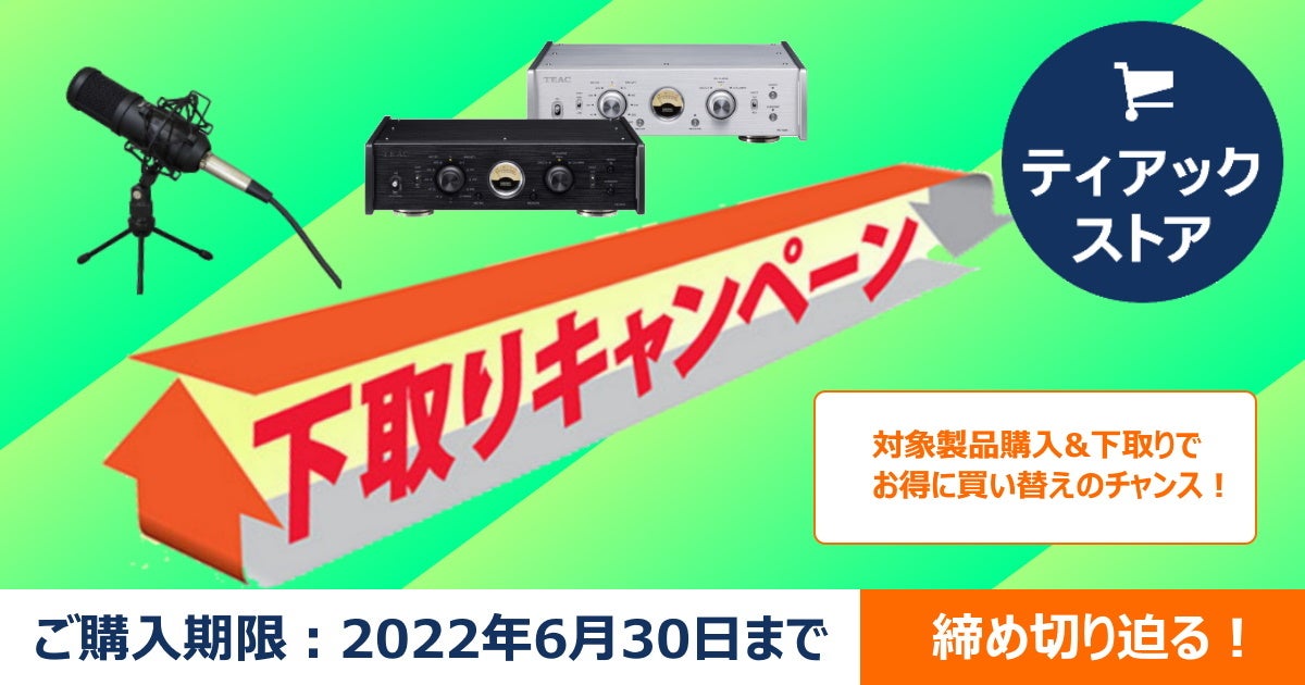 ティアック株式会社(東京都多摩市)が運営する公式オンラインストア「ティアックストア」は、2022年6⽉30日(木)までの期間、「下取りキャンペーン」を実施中です。