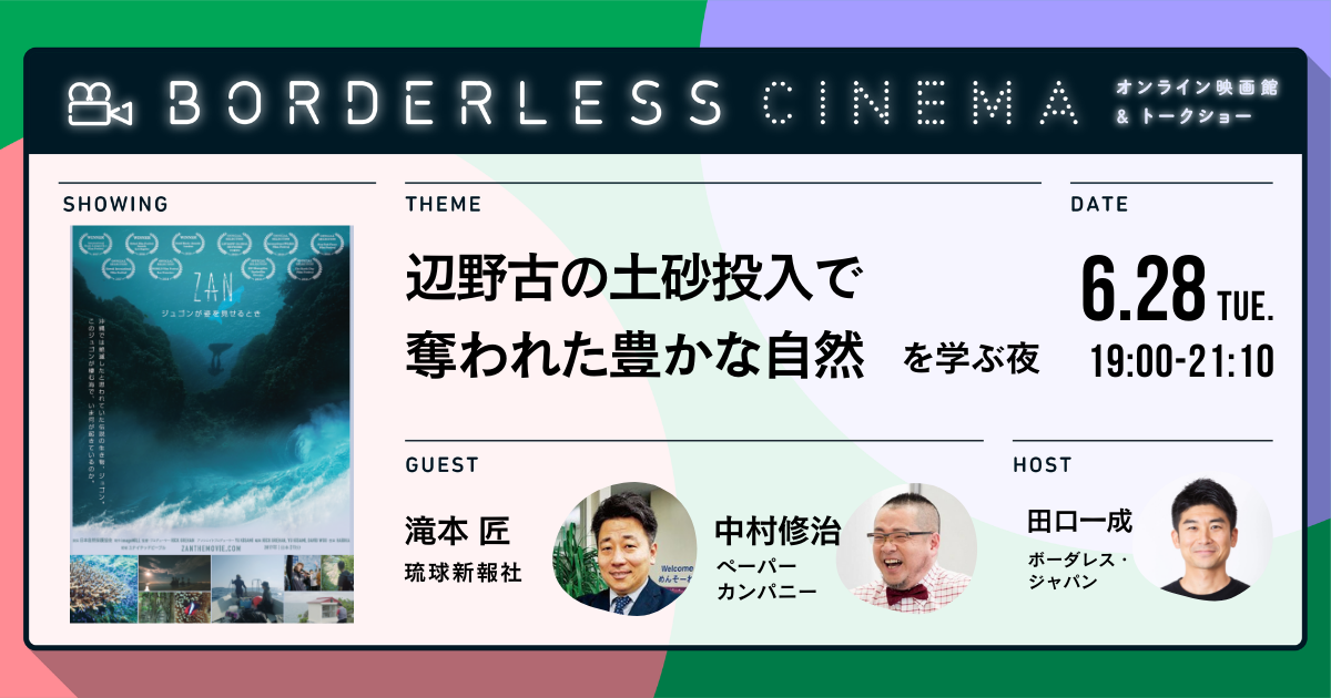 【6/28(火) 19:00-】沖縄復帰50年に #辺野古を考える「ZAN~ジュゴンが姿を見せるとき~」BORDERLESS CINEMA-オンライン映画館×トークショー
