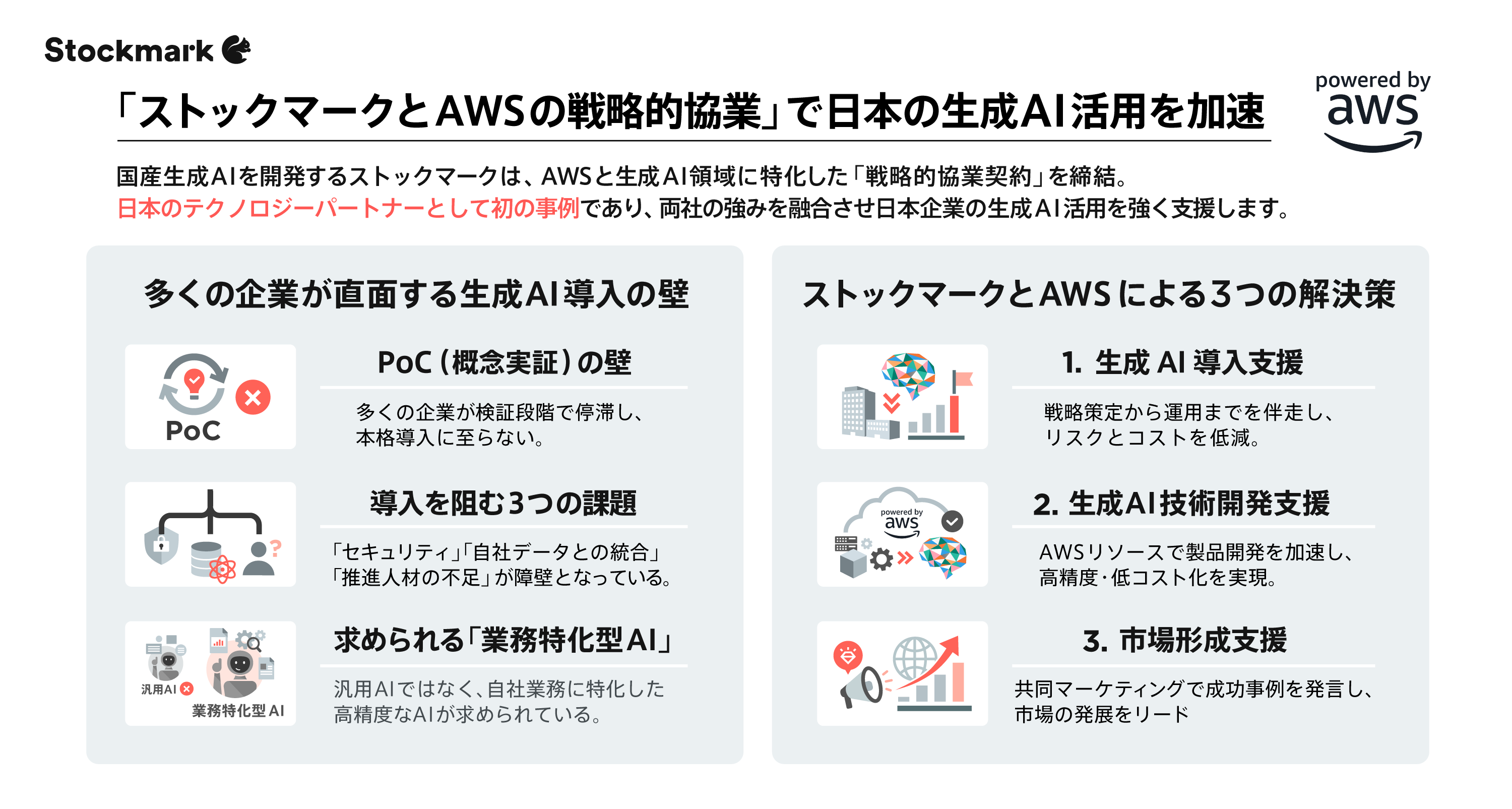 ストックマークとAWSが生成AI実装における戦略的協業契約を日本のテクノロジーパートナーとして初締結