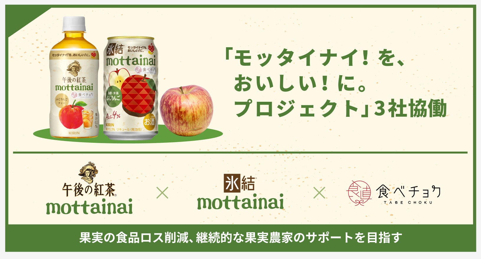 認知度・利用率など9つのNo.1(※1)を持つ日本最大の産直通販サイト(※2)「食べチョク」を運営する株式会社ビビッドガーデン(本社:東京都港区、代表取締役社長:秋元里奈)は、キリンビール株式会社(本社:東京都中野区、代表取締役社長:堀口英樹)が立ち上げた果実の食品ロス削減および果実農家支援を目指す「モッタイナイ!を、おいしい!に。プロジェクト」において、同社とキリンビバレッジ株式会社(社長 : 井上一弘)を含む企業横断の取り組みとして、協働を開始します。本プロジェクトを通じて、食べチョクのロゴ入り「キリン 氷結®mottainai ふじりんご(期間限定)」を11月18日(火)より、「キリン 午後の紅茶 mottainai ふじりんごティー」を12月2日(火)より全国で新発売いたします。