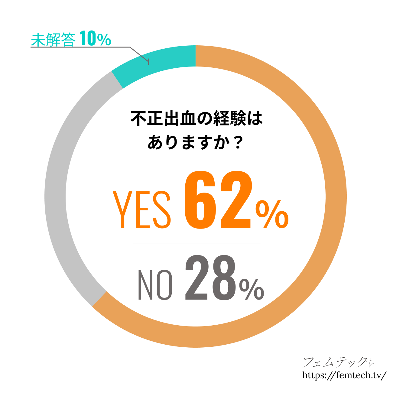 62%の女性が、不正出血を経験したことがあるという結果に。「不正出血」は、現代の女性の多くが経験する体の症状と言えるようです。