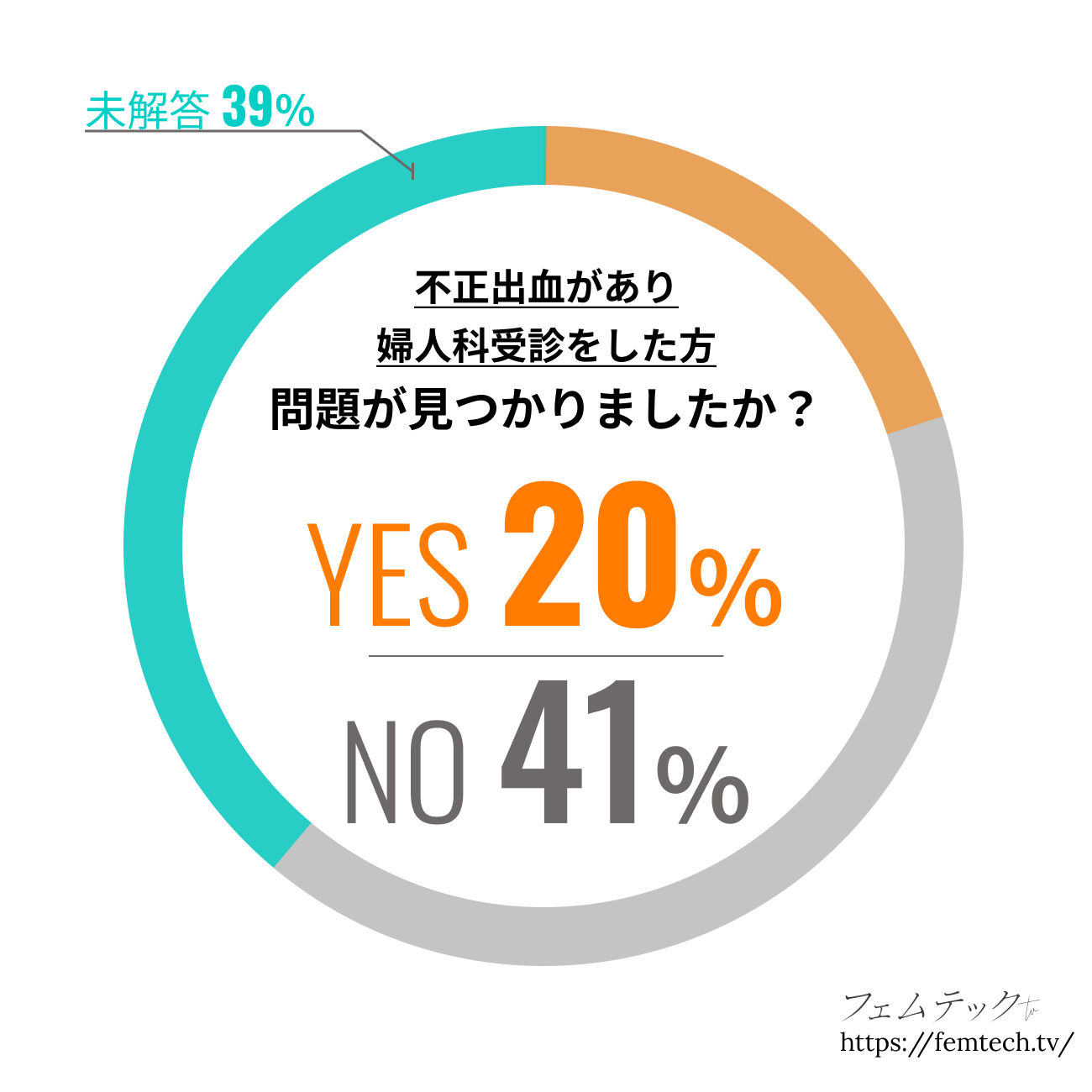 受診の結果、2割が「問題が見つかった」とのこと。その原因の約42%が、子宮筋腫や子宮内膜症、卵巣ポリープなどの「子宮にまつわる問題」と、約24%が排卵出血、月経困難症などの「生理にまつわる問題」、16%が「ストレスやホルモンバランスの乱れ」、3%が「性病」にまつわることでした。