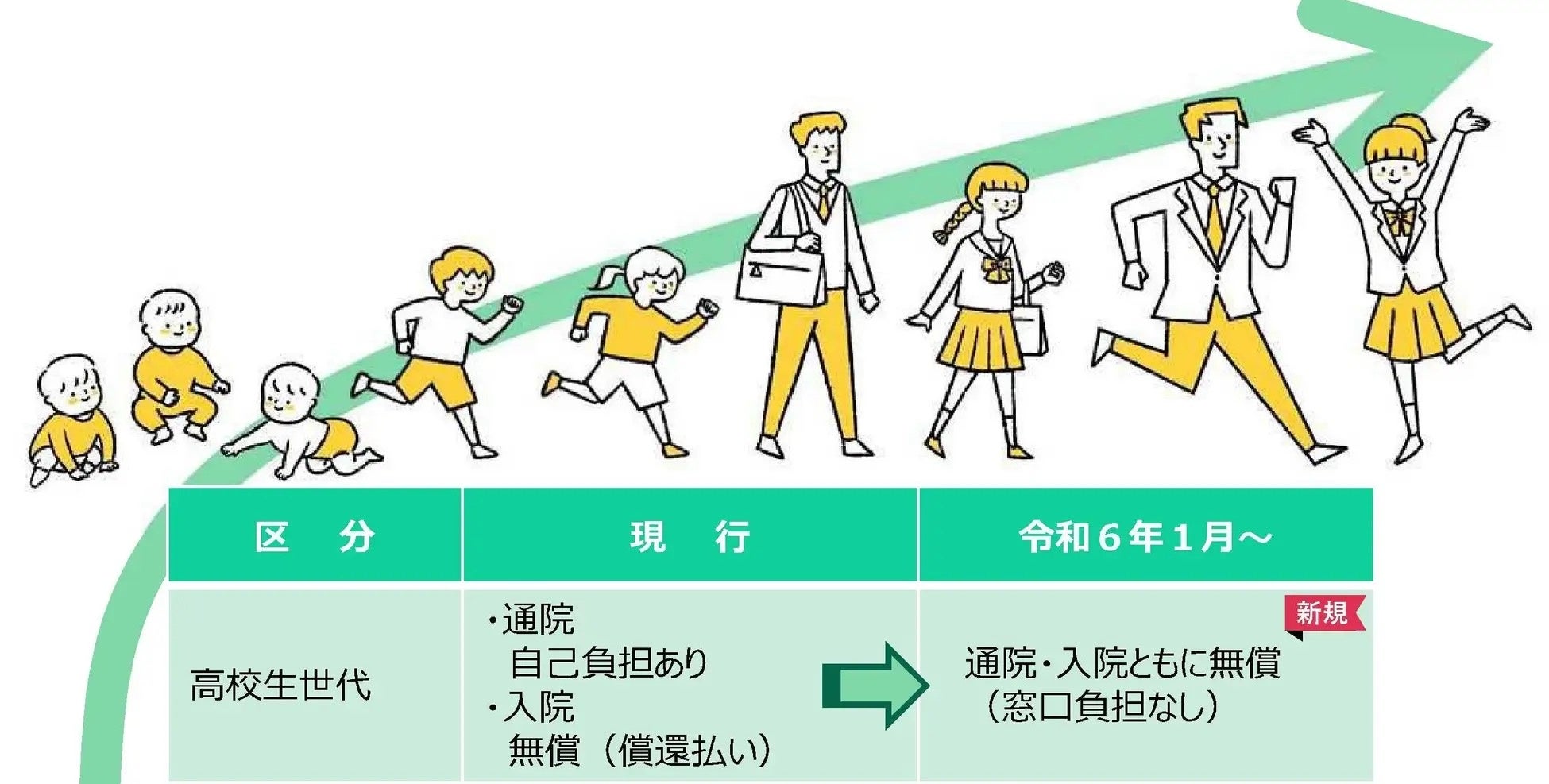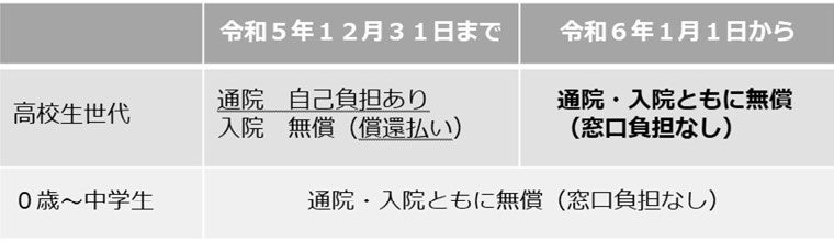 これにより0歳〜中学生と同様、高校生世代も通院・入院ともに無償に。これまで高校生世代が負担していた窓口での支払いもなくなります。