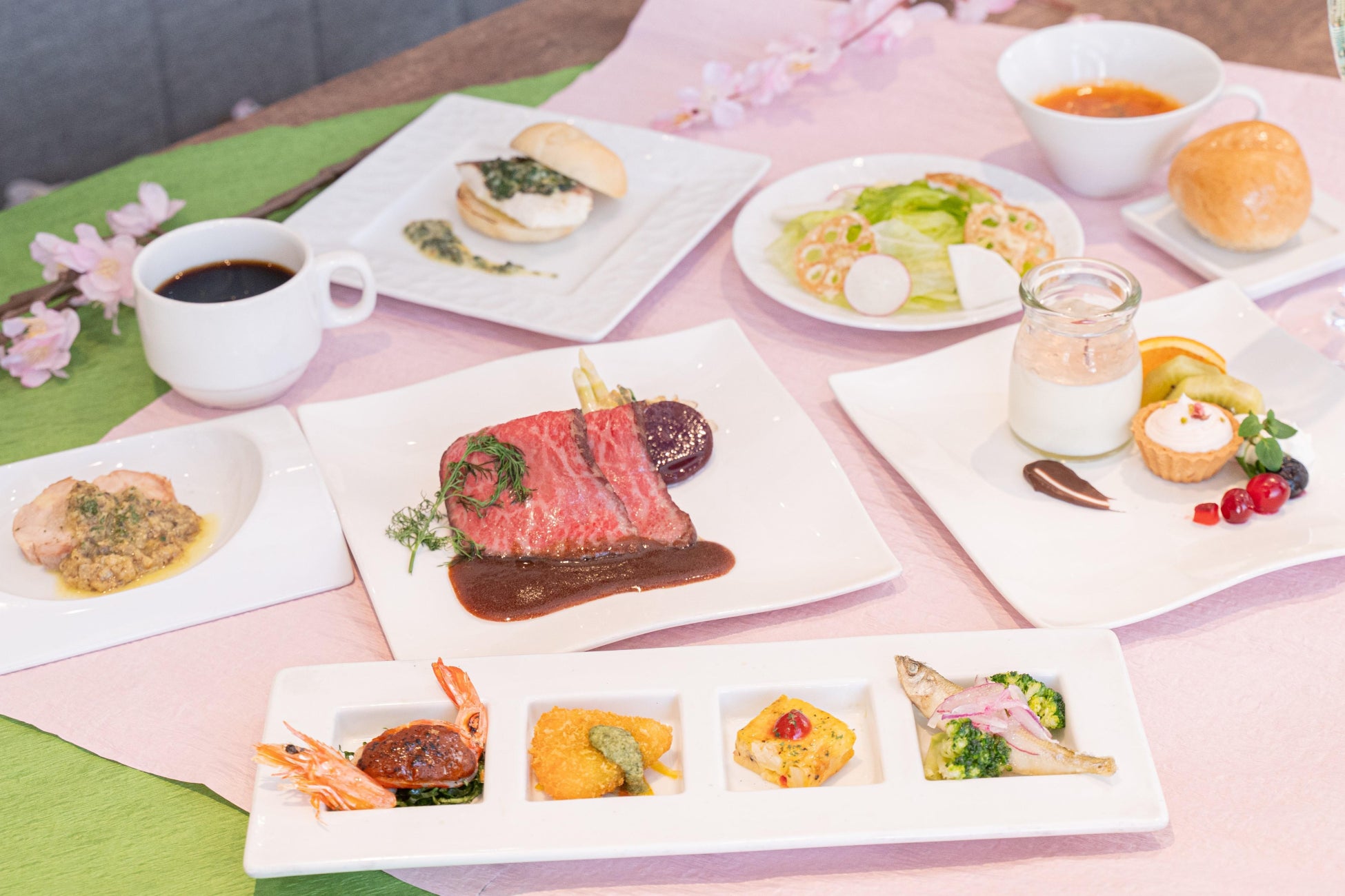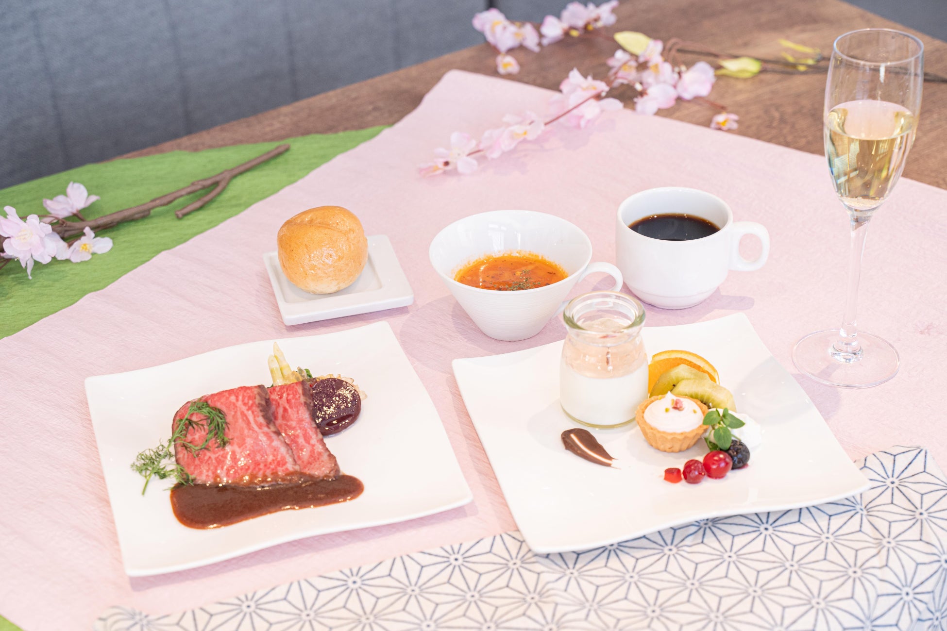 日祝日に運行し、和食/洋食のプランに加えて、春らしいスイーツと軽食を堪能できるアフタヌー
