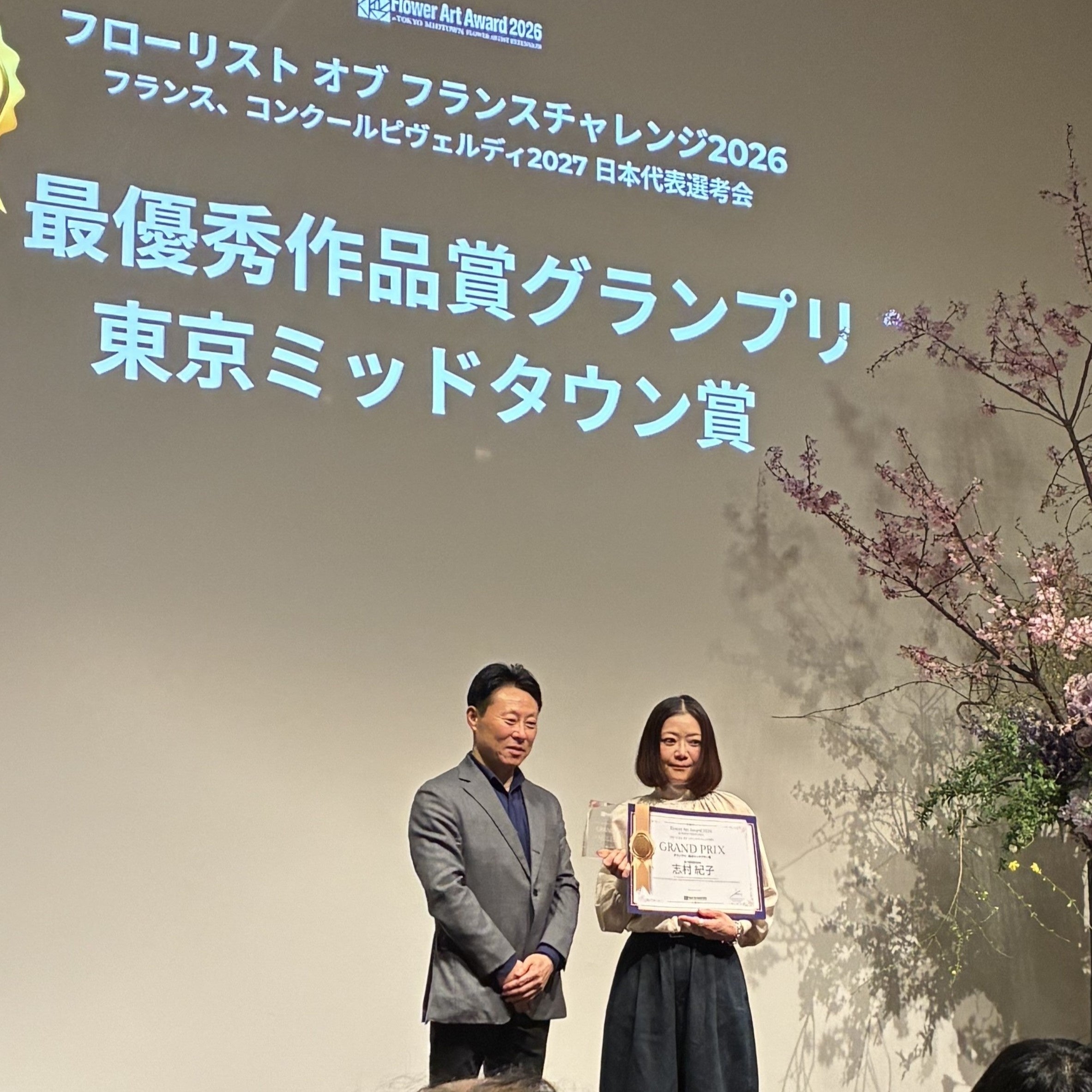 グランプリ受賞者である第一園芸の志村紀子は、フランスで開催されるフランス CONCOURS PIVERDIE 2027日本代表に選出されました。今後の活躍にぜひご注目ください。
