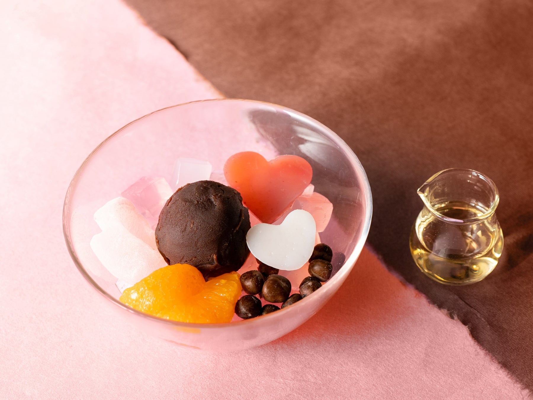 「ショコラあんみつ」は、和菓子の伝統を大切にしながらも、バレンタインらしい華やかな要素を取り入れた和スイーツです。