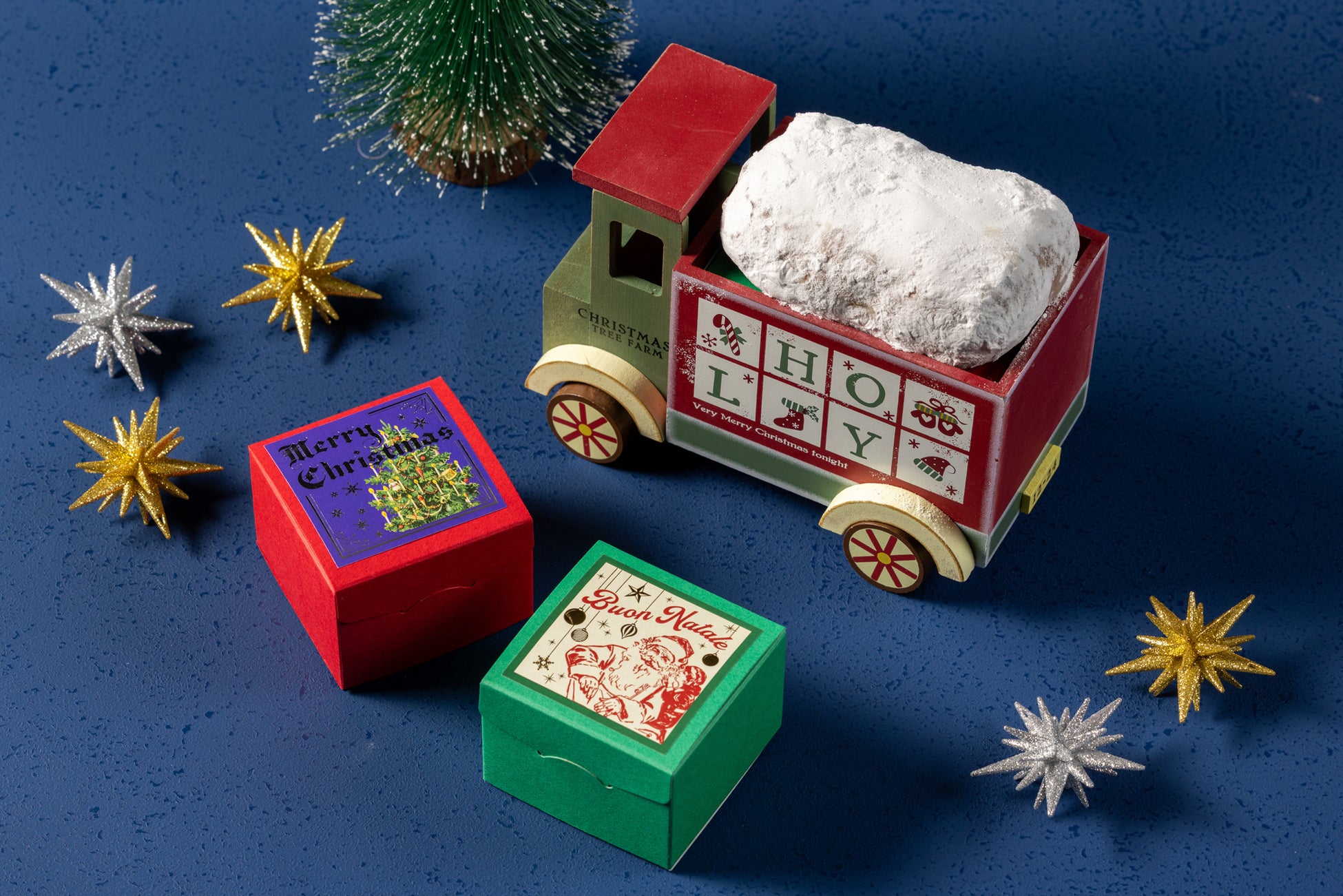 さらに、シュトーレンやパウンドケーキ、オリジナルのクリスマスデザインを施したホリデー感あふれるミニボックス入りのクッキー、チョコレートなどをアソートする「クリスマス ハンパー」も4種類ご用意いたします。シーンに合わせてお選びいただけるS、M、Lサイズのハンパーと、クリスマス限定のお子さま向けのトラック型ギフトセットは、ホリデーシーズンのギフトやパーティーの手土産に最適です。