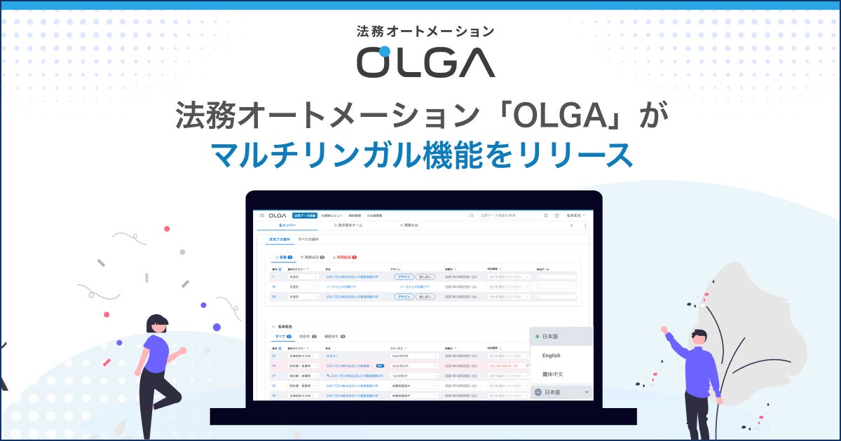 法務オートメーション「OLGA(オルガ)」が英語・中国語に対応したマルチリンガル機能をリリース