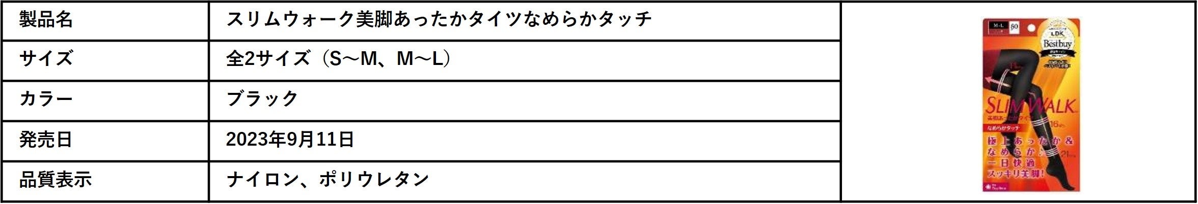 冷えから脚を守るあったかタイツがリニューアルパッケージで今年も登場 前年比125%と売上好調!「スリムウォーク® 美脚あったかタイツ なめらかタッチ」