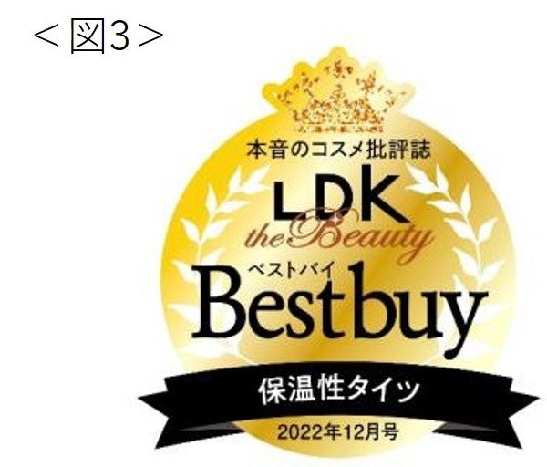 さらに、LDK the Beauty 2022年12月号 にて「美脚あったかタイツ なめらかタッチ」は、保温性・つくり・美脚効果において、最高評価を獲得いたしました。<図3>