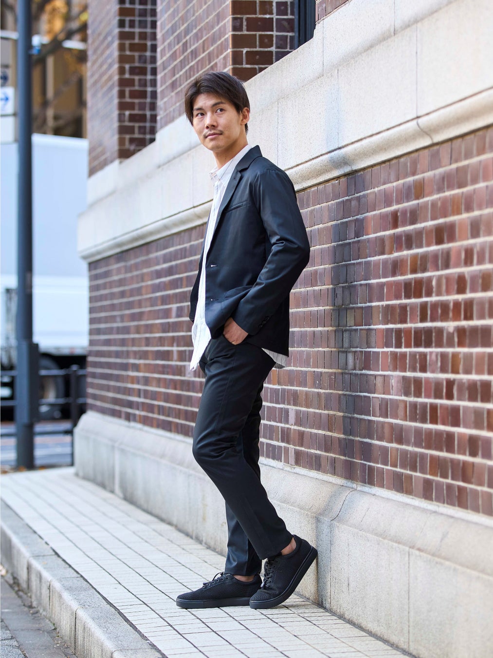 作業着スーツ、カカトが踏める革靴に次ぐ本商品は、「白スニーカーは雨の日に履くのを躊躇してしまう」というお客様の声から、ビジネスシーンでもカジュアルでも着用でき、簡単に洗えて汚れにくく、清潔感のある白さが続くスニーカーを開発いたしました。