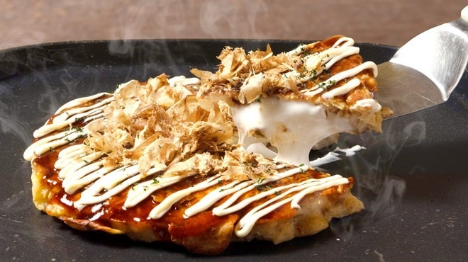 ふっくら焼き上げた生地の中に、とろ~りチーズがたっぷり!鉄板の上でとろけるチーズと濃厚ソースの香りに心も胃袋も鷲掴み!
