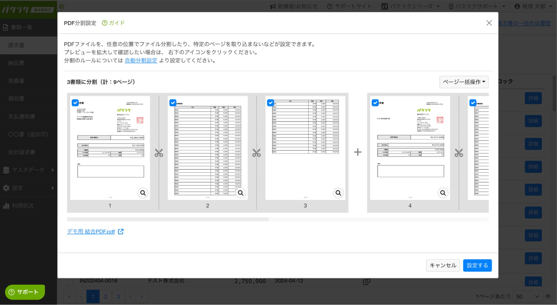 バクラク請求書発行、基幹システムで作成した請求書などのPDFを自動で分割・読み取る機能を追加。電子送付がより効率的に