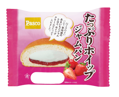 口どけのよいパンで、果肉感のあるいちごジャムを包み、ホイップクリームをたっぷりいれました。