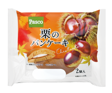 ふわもちっとしたパンケーキで、マロンクリームとマロン風味ホイップクリームをはさみました。